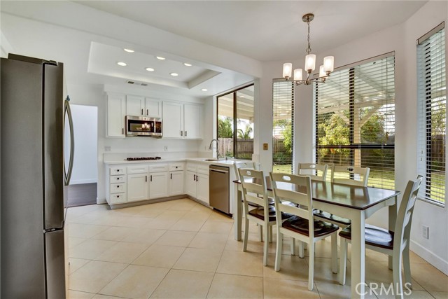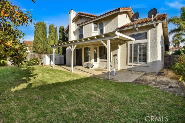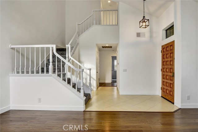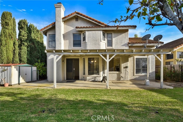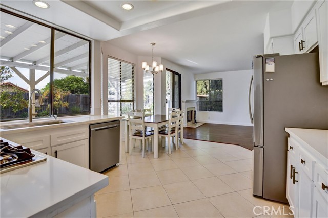 Welcome to this beautifully maintained 4-bedroom, 3-bath home nestled in the desirable Mission Oaks community of Camarillo. This inviting residence features soaring high ceilings in the living room and formal dining area that create a bright, open first impression the moment you step inside. The living room is further enhanced by black-framed French-style windows and plantation shutters. The updated kitchen offers brand-new quartz countertops, newly-faced cabinetry, stainless steel appliances, and a charming breakfast nook overlooking the backyard. You will love spending time in the spacious family room including a cozy fireplace. Conveniently, one bedroom and a full bath are located downstairs, ideal for guests or multi-generational living. Upstairs, you will find the primary suite which boasts vaulted ceilings, a walk-in closet, and a luxurious ensuite bathroom with a separate walk-in shower, soaking tub, and dual-sink vanity. Two additional sizeable bedrooms and a full bath complete the upper level. Other updates include fresh interior paint and LVT flooring. Step outside to relax under the covered patio and generous yard complete with fruit trees and a storage shed, or make use of the added space of the three car garage, offering additional storage and flexibility. This home has been lovingly cared for by its original owner and on the resale market for the very first time. It’s a rare gem in a sought-after location, just waiting for you to begin its next chapter.