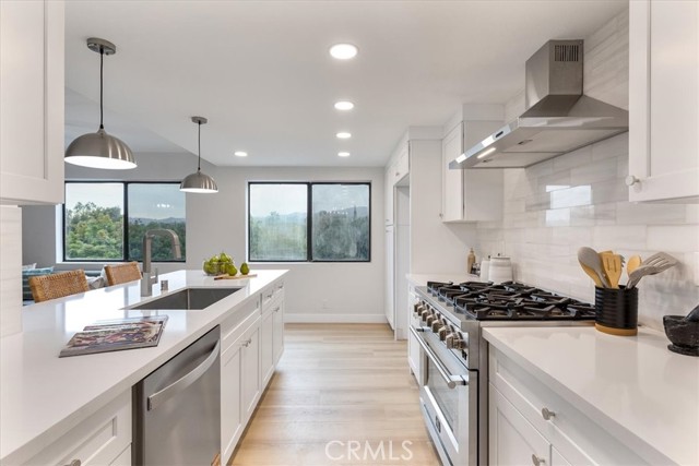 Beautifully Renovated two bedroom three bathroom home in Encino! The perfect home for entertaining, or relaxing. Open floor plan, with high ceilings, and high-end finishes. A stunning and seamless blend of contemporary modern architecture and finishes complete with a fully remodeled kitchen and three, skylights, floor to ceiling windows, new flooring and paint throughout the home. Direct access to 2 car private garage . Ideal location. Close to highways, walking distance to Trader Joe’s. Home to coveted award-winning Encino K-12 schools. This home is truly a rare jewel!