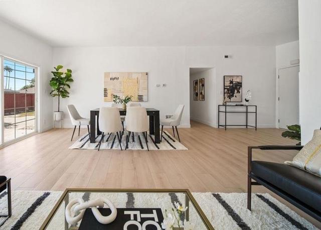 Welcome to a charming residence in Fremont, 4-bedroom, 2-bath Mid Century Modern residence featuring a seamless flow between indoor and outdoor spacesperfect for both daily living and hosting guests. The home showcases a custom kitchen with designer countertops and tile work, contemporary recessed lighting, state-of-the-art appliances, architectural beam details, beautifully appointed bathrooms, updated flooring in every room, energy-efficient windows, climate-controlled heating, fresh paint inside and out, and professionally designed landscaping on all sides. Ideally situated for convenience with nearby retail, top-rated schools, transit options, and highway connections. The expansive 7,000+ sq ft lot provides generous driveway parking, an attached garage, and substantial side and rear yard areas. This move-in ready home combines modern luxury with unbeatable functionality and location.