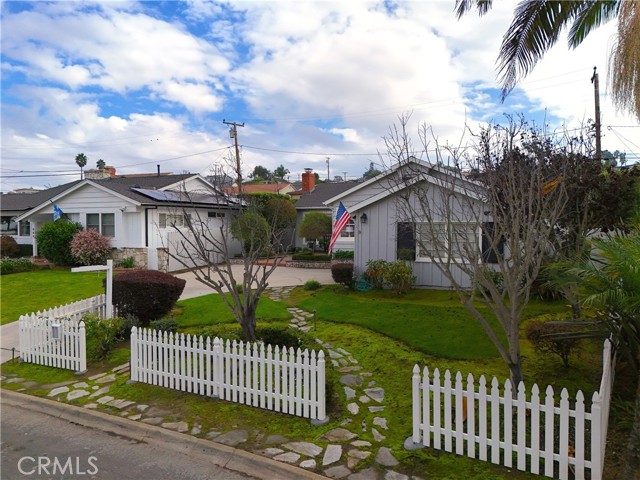 Welcome to your Forever Home! Offered for the first time in over 50 years, pride of ownership shines throughout this lovingly maintained and recently refreshed single-story home on a flat, quiet block in one of the most desirable pockets of the South Bay. Once inside, you will be drawn to gather around the warm hearth, with the oversized picture window framing your holidays. The expanded primary bedroom includes an en suite bathroom with double sinks and a large walk-in closet, features not typically found in homes of this vintage. French doors open from the airy primary suite to your lush patio, providing an equally perfect spot for family breakfasts, entertaining friends for evening cocktails, intimate morning coffee or maybe even a hot tub! Outside, this classic Southern California “birdhouse ranch” style home overflows with curb appeal, with features like window shutters, a white picket fence and rose bushes. The backyard offers a mix of hardscape and softscape: a curvilinear rock wall and natural stone patio expand the home’s usable space, mature trees give a sense of history and character; a grasssy sideyard easily accommodates pets. Improvements in 2025 include refinished original hardwood floors, new tile flooring in the kitchen and all 3 bathrooms and new carpet and interior and exterior paint. Move in with confidence knowing that the home has air conditioning, copper piping and a newer roof. Other practical features include generous built-in storage and a utility porch. Locals know that charming homes in this condition rarely become available in this desirable pocket of the South Bay. Come quick and make holiday memories this year!