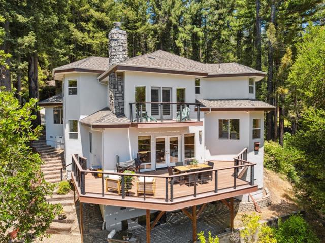 Picture yourself in a home tucked conveniently between the technological hub of Silicon Valley and the scenic beaches of Santa Cruz, nestled in a beautiful Redwood forest. This is it! Experience mountain living in the comfort, style, and serenity of 716 Dry Well Road. Built in 2000 on 3.5 wooded acres, this spacious, 4-bedroom, 2-½ bath home is truly one-of-a-kind, offering spaces ideal for a home office, music room, or simply unwinding. The abundance of windows floods the interior with natural light and showcases stunning vistas of the surrounding redwoods and mountain landscape. The expansive open kitchen features a spacious pantry, ample granite counter space, and peaceful forest views. Relax in the luxurious primary bedroom suite, complete with a spacious closet, an ensuite with dual vanities and generous storage, and a sunken retreat leading to a private deck. Venture out from the family room onto the large south-facing deck and immerse yourself in forest scenery, birdsong, wildlife, and the crisp mountain air. The home also includes a substantial 3.5 car garage with extensive built-in storage and workspace. Experience a one-of-a-kind redwood mountain haven at 716 Dry Well Road.