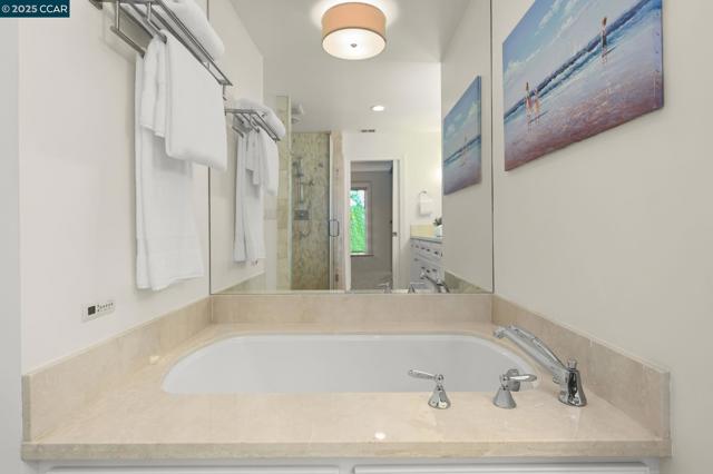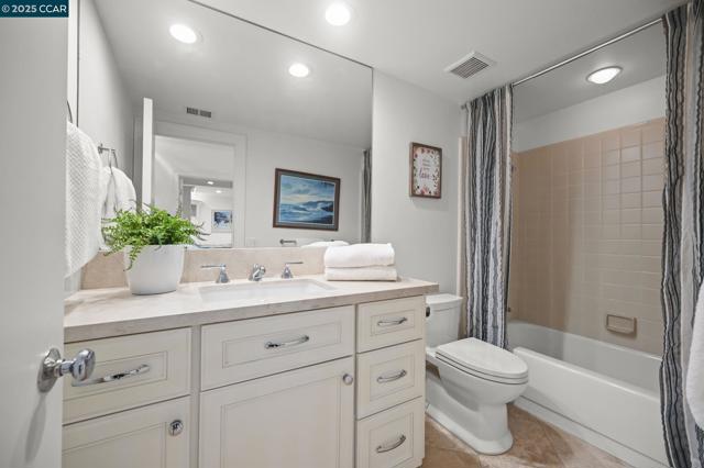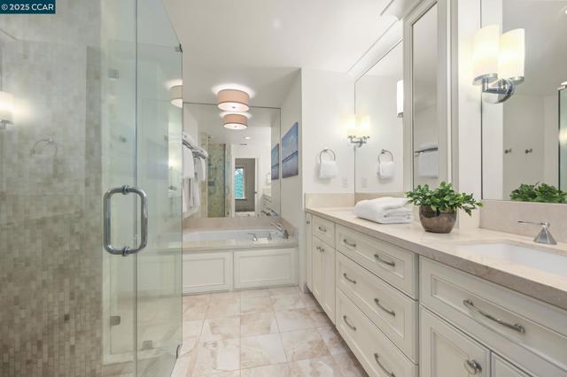 Beautifully remodeled & professionally designed, this stunning end-unit condo lives like a single-family home, without the upkeep! With 2,697 sq. ft. of living space, this is a rare opportunity to own one of the most spacious condos in the area. Soaring ceilings & abundant natural light fill the expansive living & dining areas, creating an inviting atmosphere perfect for both relaxing & entertaining. The gourmet kitchen features Wolf oven/cooktop, granite counters, stainless steel appliances, and convenient wet bar that flows seamlessly into the adjacent media/family room. Travertine floors, plantation shutters & spa-like bathrooms lend an air of luxury and sophistication throughout, while two generous bedroom suites offer comfort & privacy. The third bedroom, currently used as an office with custom cabinetry, granite island and desktops, add flexibility for today’s lifestyle. Enjoy the rare convenience of a three-car garage with a prime location overlooking the sparkling pool, quietly set at the back of the community away from street noise. Residents also enjoy a sport court, plus direct access to nearby trails for walking/biking, making this a perfect blend of style, comfort, and recreation. Close to shopping, downtown and easy freeway access for commuters. Must see!