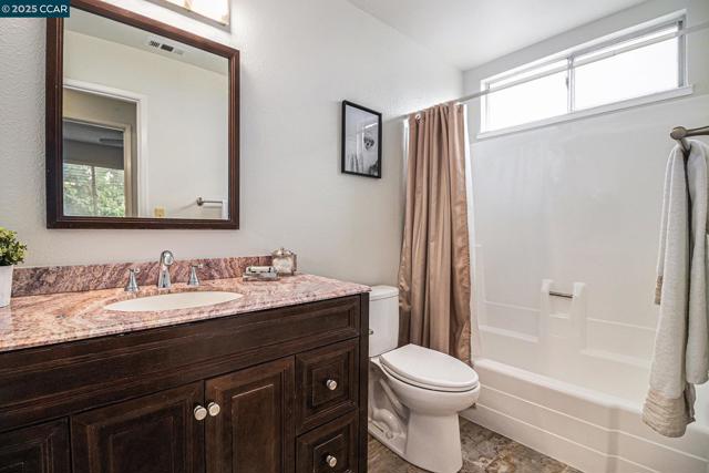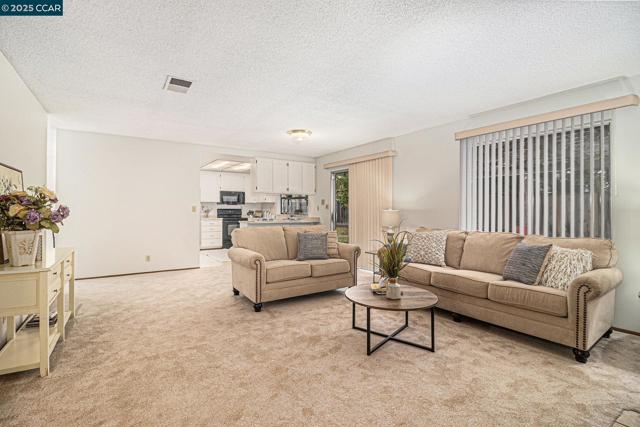 Great court location in Village Oaks! Formal living room with vaulted ceiling and wood burning fireplace plus formal dining room. Spacious family room with wood stove and slider to rear yard. Kitchen with breakfast bar, pantry, garden window overlooking the backyard, new built-in microwave and stainless steel sink, refinished countertops and freshly painted cabinets. Primary bedroom with vaulted ceiling and large closet. New carpet and freshly painted throughout. Inside laundry. HUGE backyard with lots of potential and possibilities! Central heat and air conditioning. Community pool and tennis with low HOA dues. Conveniently located to shopping, award winning Morello Park Elementary, Highways 4 and 680. Just minutes away from vibrant downtown Martinez where you will find restaurants, farmer's market, shopping, coffee houses, breweries, the Martinez Marina, walking trails and so much more!