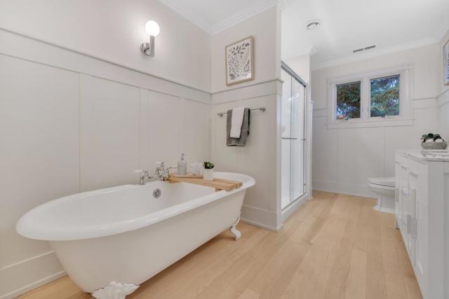 Experience timeless charm and modern comfort in this exquisite Tudor-style 4BD/4BA home, ideally located in the heart of San Mateo, desirable West Side Beresford Park neighborhood. Situated on a beautifully landscaped 5,610 sq. ft. corner lot, this 2,480 sq. ft. light-filled residence blends classic period details w/ modern updates. A welcoming formal entry leads into a spacious living room w/ fireplace adjacent to a formal dining room. The updated kitchen with abundance of cabinets, stone countertops, stainless steel appliances & a breakfast nook. Separate family room opens seamlessly to the backyard oasis, complete with two patios & garden area. A charming outbuilding offers flexible use as an artist studio, office, or guest suite. Four bedrooms, including one on the main level with a full updated bath. Upstairs, the luxurious primary suite has a fireplace and a spa-like bath, while the additional bedrooms each feature private en-suite bathrooms, including one with a charming sitting area. Features hardwood flooring, freshly painted interior, laundry area & an attached two car garage w/ generous storage space. Located on one of the most charming streets in West Side San Mateo just minutes to Hillsdale Mall, caltrain, schools, parks, trail, HWY 101/92/280 and all tech hubs.