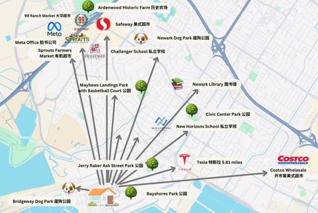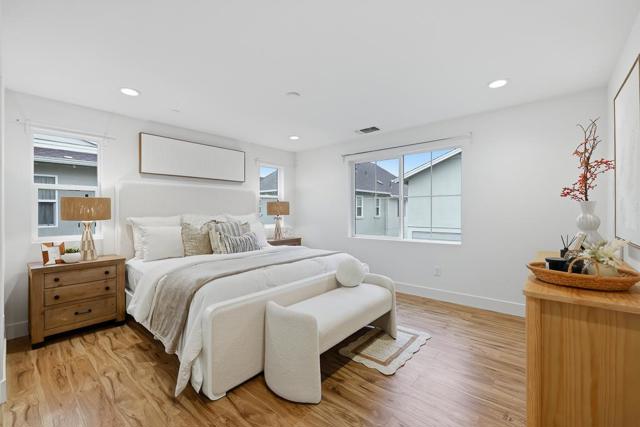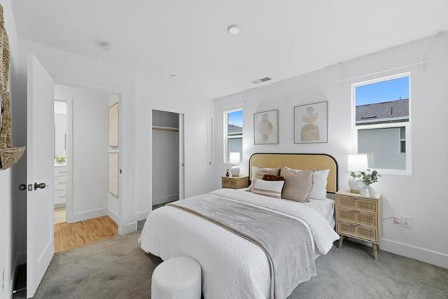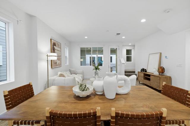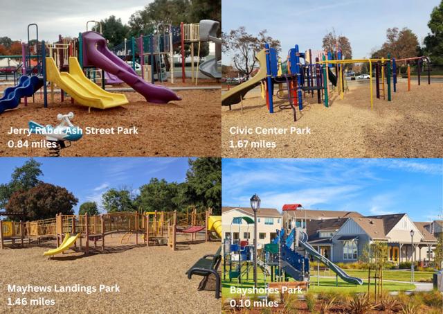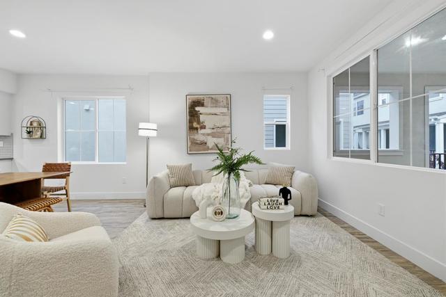 Welcome to this bright corner-unit townhouse in the highly sought-after Bayshores Community. Upon entering, youll find a ground-floor bedroom suite, ideal for guests, rental income, or multi-generational living. On the main level, the open-concept layout seamlessly connects the living, dining, and spacious kitchen areas. The gourmet kitchen features premium stainless steel appliances, sleek cabinetry, and a beautiful island. Just off the living room, a rare oversized balcony offers the perfect space for outdoor entertainment and large gatherings. Upstairs, the light-filled primary suite includes a walk-in closet and a dual-sink vanity. Two additional guest bedrooms share a well-appointed bathroom, providing comfort and convenience for extended family. Additional highlights include a side-by-side two-car garage with a new epoxy floor and Tesla EV charger, plus central AC for year-round comfort. Enjoy short walks to Bayshore Park and community amenities such as the clubhouse, playground, and BBQ area. Located just minutes from NewPark Mall, Ranch 99, Sprouts, Costco, and popular local dining, with easy access to I-880, the Dumbarton Bridge, and BART. Close to major employers including Meta and Tesla. Move-in ready and perfectly situated for modern living!