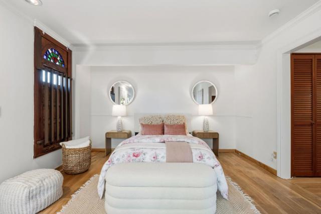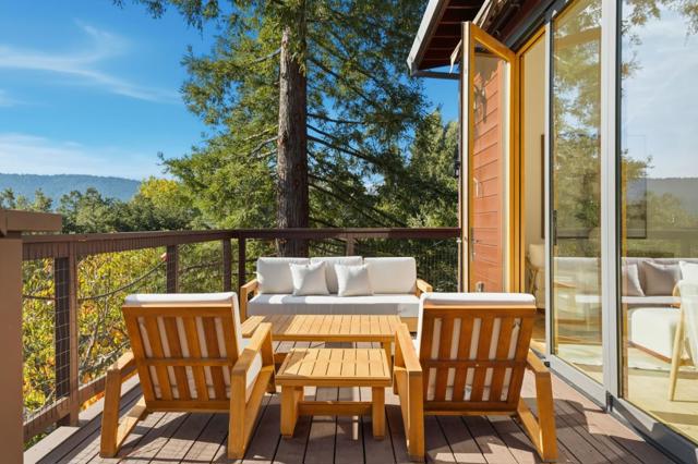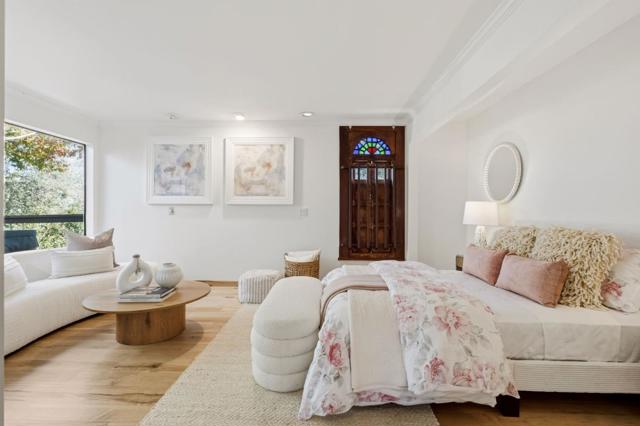 711 West California is crafted for those who value quality, creativity, and originality. Set above Redwood City in Emerald Hills, the home blends elevated elegance with soulful design. An iron gate by Burning Man artist Bryan Tedrick and a Santa Fe stained-glass window set the tone for the detail and history woven throughout. The 4,186 sq ft residence on a 28,024 sq ft lot offers three bedrooms with flexibility for a fourth, soaring ceilings, and sweeping views through dual 7x20 folding doors opening to expansive decks. The refined kitchen features a granite island, six-burner range, pot filler, oversized refrigerator, and custom cabinetry. The primary suite includes a granite spa-inspired bath with a steam shower, soaking tub, large walk-in closet, and a gas fireplace. Downstairs, a spacious open area - once an art gallery - invites income potential or additional living quarters. The grounds include terraces, mature fruit trees, solar roof panels with EV charging. Thoughtfully built cedar outbuildings offer room for a gym, yoga, music, or retreat. An upgraded electric panel supports functionality.