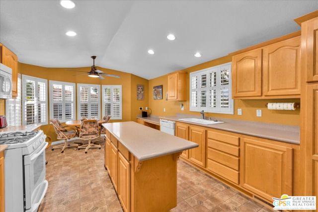 FEE LAND!!! Means you own the land! Don't miss this incredible oppotunity to live in the 55 plus gated community of Vista Montana! This amazing three bedroom home offers a good quality ceramic tile roof, 2 car attached garage, extensive open, concrete patio, partial PVC fencing shared with one neighbor. This is the original owner! This home has extensive laminate flooring throughout, primary bedroom with ensuite bathroom, sunken tub, stall shower, large closet and dual sinks. There is access from the primary bedroom to the large patio yard. The two remaining bedrooms share another bathroom which has a tub over shower. The kitchen is the focul point of this beautiful home with a large island which has extensive additional cabinets, many of the cabinets in the kitchen have roll out shelves. There is a cozy breakfast area in the kitchen which offers a nice mountain view. In addition there is extensive use of plantation shutters throughout. The exterior also has low desert landscaping in the front of the property. Vista Montana is well recognized for its excellent ameneties which include, a billiard room, large resort style pool and spas in addition there is a smaller pool which is not heated. There is a large clubhouse with kitchen and multi-purpose room for community and private events, onsite part time manager, exercise room, sauna, BBQ area, dog park, greenbelt and walkways. This home has a recorded 433A certification which allows for a cash buyer or potential loan for a qualified buyer.