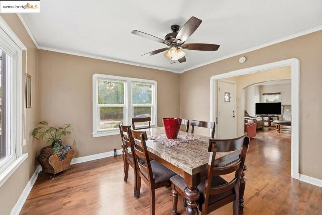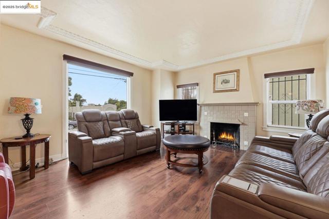 Welcome to treeline 5230 Hillen Drive, a charming Tudor-style home in the highly loved Maxwell Park community of Oakland. Its classic pitched rooflines, distinctive trim, and timeless character fit beautifully among the neighborhood’s variety of architectural styles. The home sits centered on a 4,500 sq ft lot, with pristine front, side, and rear yards that reflect true pride of ownership. A long driveway provides ample parking and leads to a detached structure offering great potential, all overlooking a peaceful, park-like backyard. Inside, the main level delivers an inviting layout. The spacious living room features a bold fireplace and a large picture window that fills the space with natural light. The dining room is generously sized as well, with additional windows brightening the shared living areas. The refreshed kitchen includes cherry-wood cabinetry, custom tile backsplash, stone countertops, tile flooring, and stainless-steel appliances, and opens directly to a cozy porch overlooking the serene yard. The updated bathroom offers easy access to the main-floor bedrooms and leads naturally to the upstairs rooms. This 1,740 sq ft, 4-bedroom, 1-bath Tudor blends character, comfort, and curb appeal—an exceptional opportunity in one of Oakland’s most cherished neighborhoods.