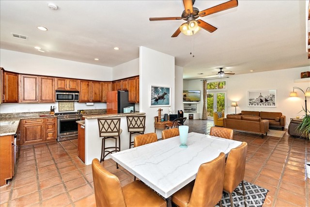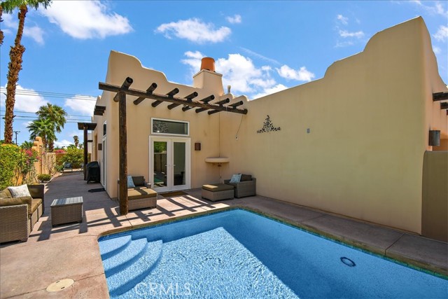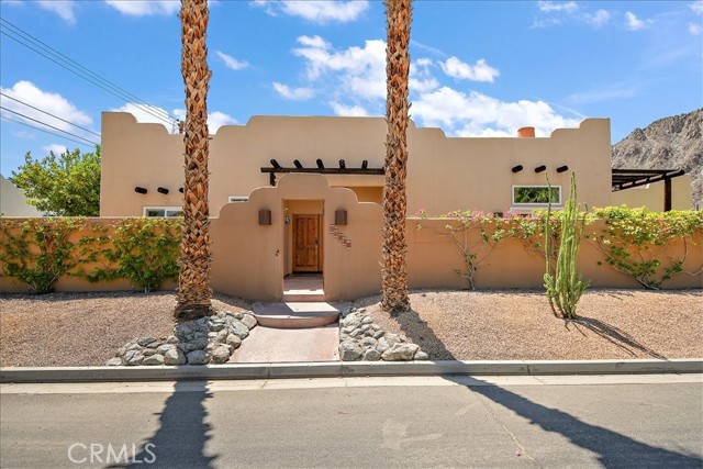 LOCATION. LOCATION. LOCATION. MOTIVATED SELLER. FURNISHED. SUCCESSFUL RENTAL. Beautiful garden, view home on an elevated, corner lot near walking trails & town center in storied La Quinta Cove. Located in coveted La Quinta Cove, this walled & gated, lock-&-go, private retreat sits on an elevated corner lot, surrounded by 3 original, historical Haciendas. Residence provides unmatched privacy, sweeping mountain & palm tree-top vistas (inside & out) w/seamless indoor-outdoor living. This comfortable home FEELS good & is designed to maximize its natural light & captivating views, w/vaulted ceilings & an open-design layout/floorplan. This Adobe Santa Fe-style home offers an exquisite blend of Spanish charm & present-day amenities that punctuate architectural elegance. You will love this comfortable, open-layout home w/refinished Tecate tile floors. Besides having great A/C, Tecate tile keeps the home cooler in summer & cuts down on cooling costs. Newer, stylish refrigerator w/ice maker & beautiful hardwood cabinets enhance the larger kitchen area open to dining room & living spaces. Oversized, primary bedroom has ensuite bath w/authentic Spanish tile in shower & glass block window for privacy & natural light. Bedroom slider leads to quiet, back patio breakfast area w/lemon tree, small fountain for water sounds & planters w/fresh basil & flowers. Two additional bedrooms round out the home & another full bath w/tub/shower. Inside laundry w/new washer/dryer & storage cabinets is next to an additional coat/utility closet. Wood-burning (now painted white) fireplace. Lots of storage. Home was built to truly enjoy the desert climate & lifestyle! Walk into your private gated courtyard w/your own pool, patio furniture & loungers with cushions & pillows. If you are looking for a private entertainers & living space delight, look no further. Great layout! This home is offered furnished w/all the accoutrements for a seamless move in. It has also been on a successful rental program w/historical rental income which can be validated. Perfectly positioned just steps away from the scenic Bear Creek Nature Trail walking trails (2 blocks away) or a short drive or Ebike ride to the trailhead or downtown historic La Quinta Towne Center w/all it's shops & restaurants! Whether entertaining or enjoying peaceful desert evenings, or renting it, this property is a dream come true. A must see & great investment! You will not be disappointed after seeing this one! Bring us an offer.