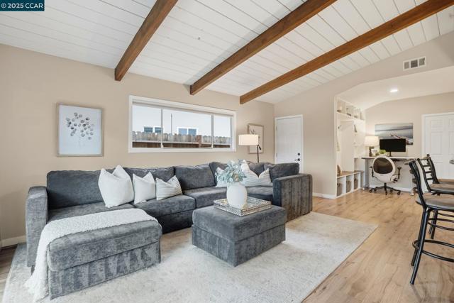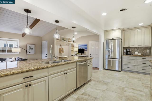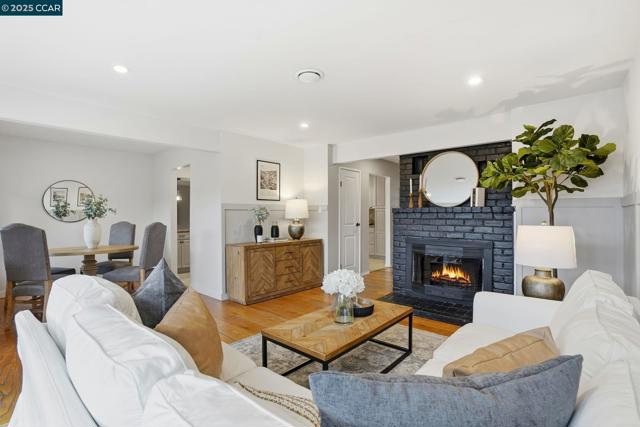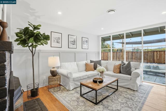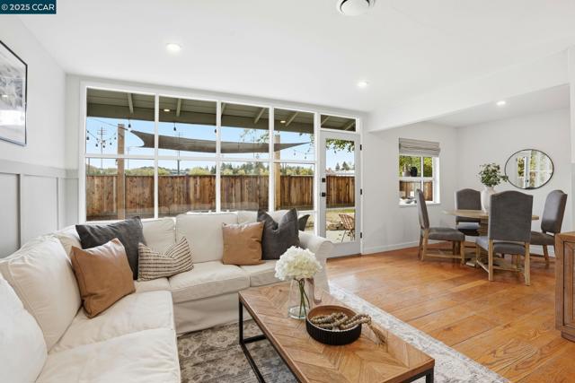Welcome to College Park! This beautifully updated, single-story 3-bedroom, 2-bath home offers 1,524 sq ft of comfortable, move-in-ready living space. The floor plan is both inviting and functional, featuring a warm living room with hardwood floors, custom wainscoting, a charming fireplace, and a wall of windows overlooking the rear yard. The separate dining area is perfect for family meals or entertaining. The kitchen includes granite countertops, a travertine backsplash, tile floors, a breakfast bar, and stainless steel appliances(new in 2021), flowing seamlessly into the family room with built-in storage and sliding doors to the backyard. Remodeled yard in 2021, the large, flat yard offers no rear neighbors, mature trees, manicured lawn, a stamped concrete patio, with room for raised garden beds. The primary bedroom features a custom closet and updated en-suite bath, while two additional bedrooms provide ample space. Recent upgrades include exterior paint (2021), hot water heater (2024), and HVAC system (2025). Located near schools, shopping, and dining, this turnkey home combines charm, comfort, and convenience. It’s a rare opportunity to own a property in one of Pleasant Hill’s most desirable neighborhoods. Experience the best of College Park living—your future home awaits.