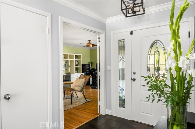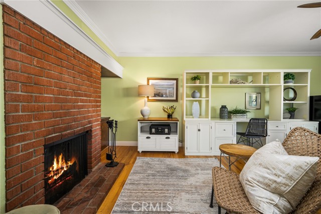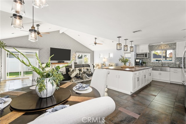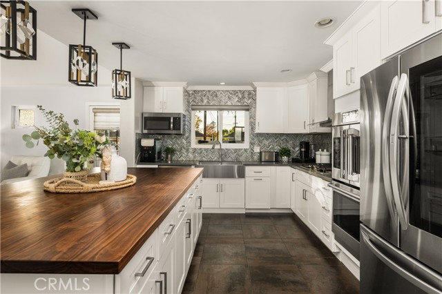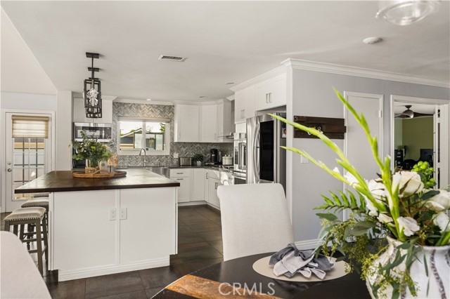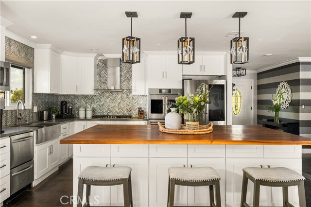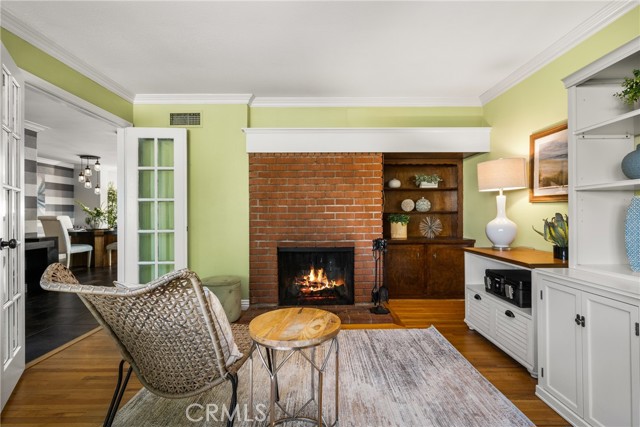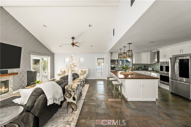 Nestled just a short distance from Old Towne Orange, this beautifully renovated four-bedroom, two-bath home, blends modern finishes with timeless charm. An inviting open-concept layout welcomes you inside, highlighted by a spacious great room with a cozy fireplace- perfect for gatherings or relaxing evenings at home. The showpiece kitchen is designed for both function and style, anchored by a large 5 ft. x 8.5 ft. island featuring a warm butcher block countertop complemented by sleek white kitchen cabinetry, quartz countertops, glass-tile backsplash, and top of the line appliances including a bakery-style double oven. Enjoy the added comfort of a separate living room with hardwood floors, French doors, and a secondary fireplace OR use this versatile space as a home office, gym, or playroom. The spacious bedrooms feature gleaming hard wood floors, fresh paint, and ample closet space. Some of the newer upgrades include a tankless water heater, water softener, living room sliding doors, additional 100 AMP electric panel, all light fixtures upgraded, updated plumbing throughout, air conditioning, indoor laundry closet, and more. Out back, a lovely and low-maintenance backyard awaits with newer vinyl fencing, durable artificial turf, and a pergola for outdoor gatherings. With its corner-lot setting, modern finishes, and thoughtful improvements, this home is a rare find combining warmth, style, and everyday convenience. Nearby is Chapman University, the historic Plaza which features annual holiday events, shopping, and a wide variety of restaurants. Fall in love and make this your new home!