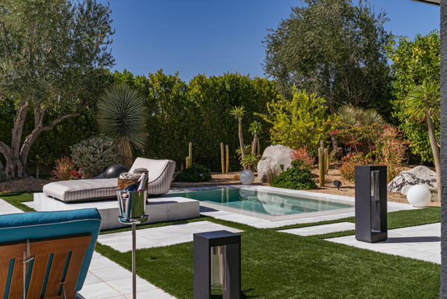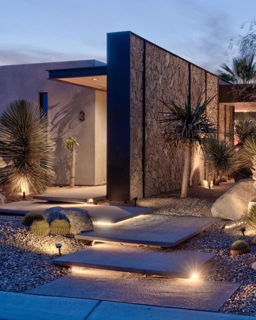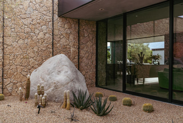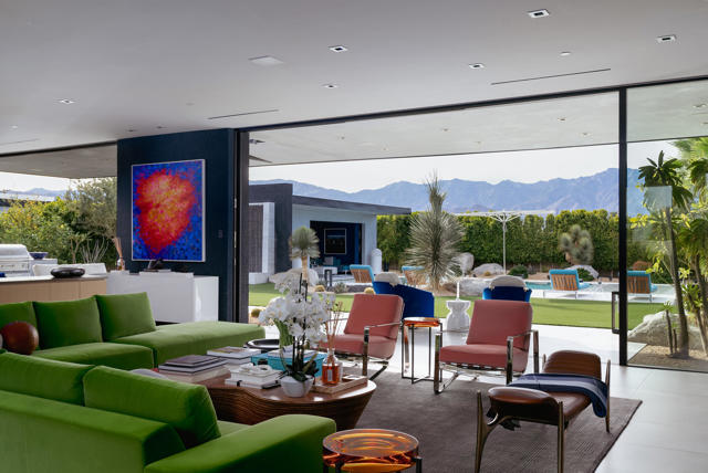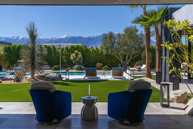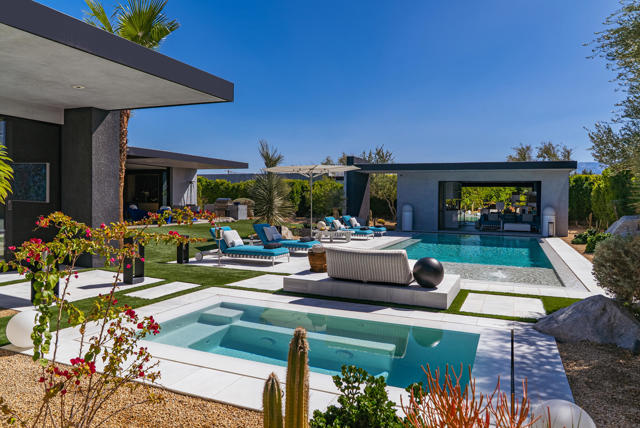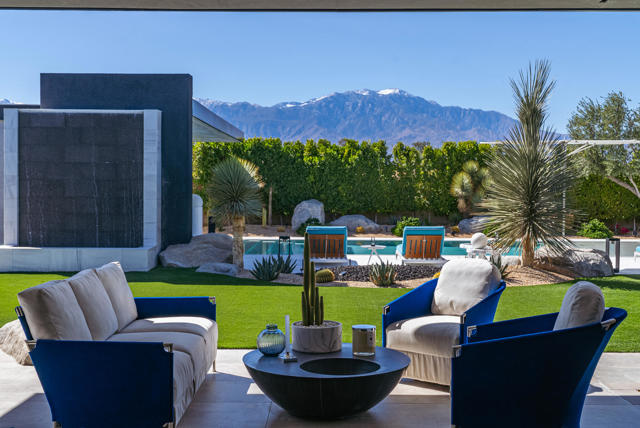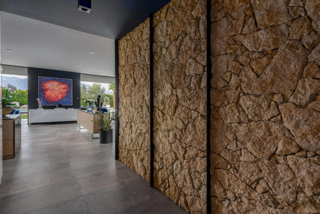 An architectural study in volume, light, and material, designed by Sean Lockyer AIA, principal architect at Studio AR&D. Steel-beam construction frames expansive interiors where masonry walls and organic finishes meet mountain views and the desert horizon. Living spaces flow seamlessly to a transformed outdoor environment: an upgraded zero-edge pool and spa, water feature, and meticulously designed lighting and landscaping by Stoker Pools. The primary suite is a study in quiet luxury, anchored by a freestanding travertine tub carved from a single block. Floor-to-ceiling Fleetwood sliders, Gucci and Phillip Jeffries wall coverings, and California Closets throughout bring precision and clarity to every detail. An open gazebo has been transformed into a full casita, currently configured as the pool cabana, but is perfectly suitable for an office or fourth bedroom suite. Every element is intentional--Control4 home automation, butler's pantry, and custom finishes combine function with art. Renowned for its privacy and quiet prestige, Rancho Mirage has long been a preferred refuge for Presidents, business leaders and Hollywood elite. This property is truly unmatched in vision and execution, and beyond anything offered in today's new construction market. Shown by appointment.