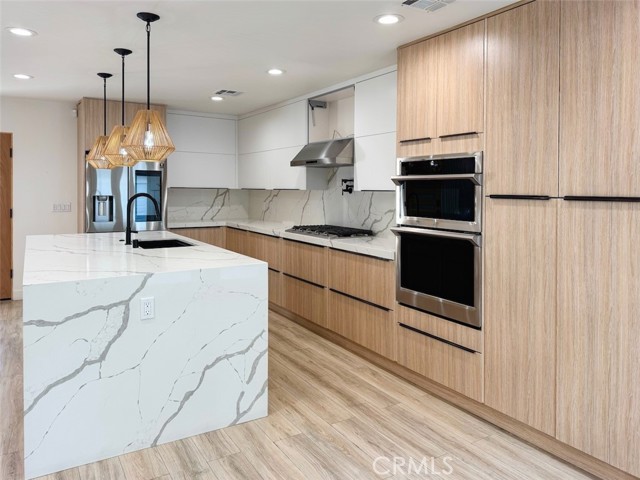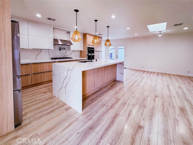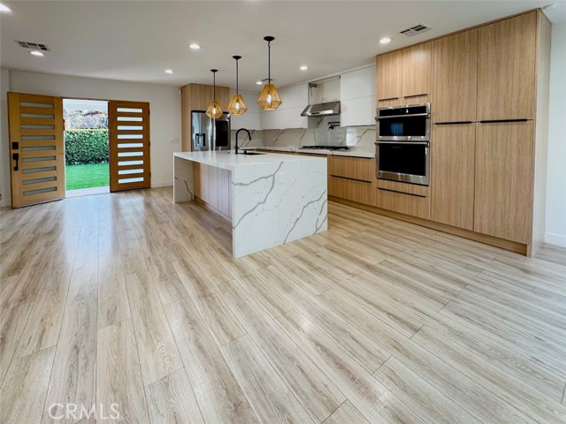 Exquisite Modern Oasis in Prime Woodland Hills! Welcome to 22539 Dolorosa St a beautifully reimagined 4-bedroom, 2.5-bath single-story home spanning nearly 2,000 square feet of refined living space. Set on a private, gated lot in a desirable pocket of Woodland Hills, this residence blends modern design with smart functionality for today’s lifestyle. Step inside to an open-concept floor plan flooded with natural light, highlighted by skylights, recessed lighting, and tasteful finishes throughout. The extraordinary chef’s kitchen is the heart of the home, featuring a massive breakfast island, quartz counters, and stainless steel appliances ideal for entertaining and culinary creativity. The spacious bedrooms come with custom built-out closets, while the designer bathrooms combine elegance with comfort and practicality. Indoor-outdoor living is effortless, thanks to a surround sound system inside and out, creating the perfect atmosphere for gatherings. Your private backyard oasis awaits with a SPARKLING POOL AND SPA, framed by mature landscaping for total serenity. A DETACHED BONUS ROOM offers endless flexibility whether for extended guests, a home office, studio, or rental opportunity. Enjoy modern amenities like central air & heat, a 16-camera security system, and sleek laminate wood floors throughout. This turnkey home offers privacy, smart use of space, and stylish comfort — all within minutes of shops, restaurants, award-winning schools, and Ventura Blvd.