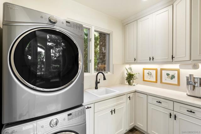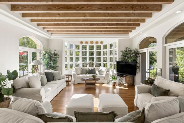 Revel in peace and serenity at Villa Calle Serena! Lovely treetop views and a private backyard oasis with lush gardens, expansive paver patios and an inviting Pebble finish pool and spa can be yours to enjoy, every day! Inside, you'll love the remodeled kitchen by Jackson Design and Remodeling, featuring custom furniture-grade cabinetry and high-end Wolf and SubZero appliances. The kitchen is open to an inviting breakfast nook and spacious family room, filled with natural light. Entertain friends or family in the formal living and dining rooms, with multiple sets of French doors bringing the outdoors in. Two bedrooms with ensuite baths complete the main level. The luxurious primary suite and three additional bedrooms are upstairs, each with ensuite bath and private balcony with stunning views — including a peek at the south side lake! You'll love the Fairbanks Ranch lifestyle! Residents enjoy top-notch security with manned gates and 24-hour roving patrols, 75-acres of common area with walking trails and equestrian trails, a private lake with fishing and paddle boating, four tennis courts, four pickleball courts, clubhouse, private park with play equipment for children, sand volleyball and half basketball court, and a first class equestrian center with three riding rings. Residents also enjoy access to excellent public schools including Solana Santa Fe School (K-6), Earl Warren Middle School (7-8) and a choice of Torrey Pines High School or Canyon Crest Academy.