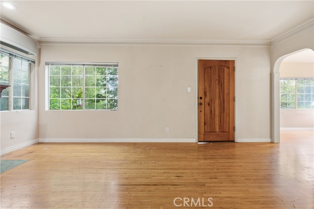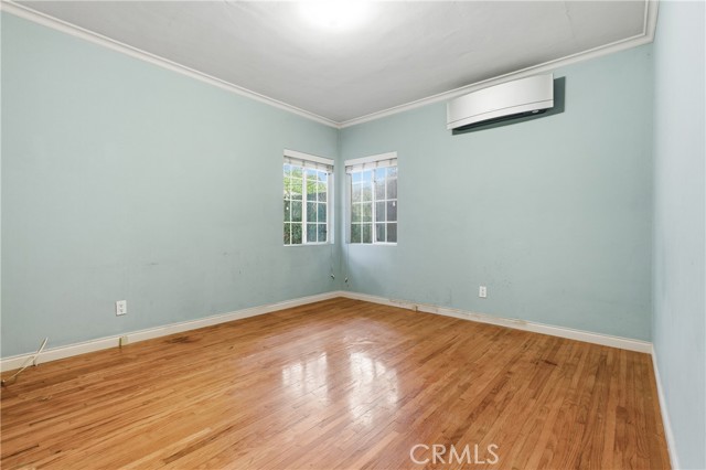 Beautifully maintained 2-bedroom, 1-bath Culver City home offering 1,020 sq ft of comfortable living space on a generous 5,999 sq ft lot. Built in 1939, this timeless residence blends classic charm with tasteful modern touches throughout. Step inside to discover gleaming hardwood floors, crown molding, and a warm, inviting living room featuring a gas fireplace and recessed lighting—perfect for relaxing or entertaining. The updated kitchen boasts wood cabinetry, quartz countertops, and a stylish tile backsplash, providing both functionality and contemporary appeal. The bathroom includes a tub/shower combo, maintaining the home’s classic feel. A mini-split AC/heater system ensures year-round comfort. The detached 1-car garage is located in the back of the property with a long driveway with a gate is currently converted into a flex space with glass slider doors which offers incredible flexibility, but can be easily transformed back into a traditional garage thanks to the existing automatic garage door. There is an added half bathroom behind the garage, and this whole space can be legally converted to a detached ADU. Outdoors, you’ll enjoy a peaceful, private setting surrounded by mature trees, creating a serene retreat for gardening, lounging, or entertaining. Ideally located just off the 405 freeway and only a short drive to Marina Del Rey, this home offers unmatched convenience while maintaining a quiet residential feel.
