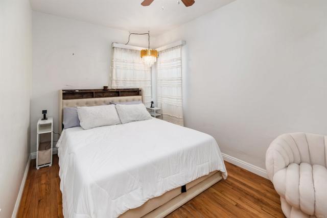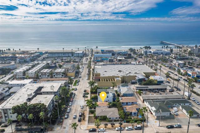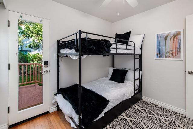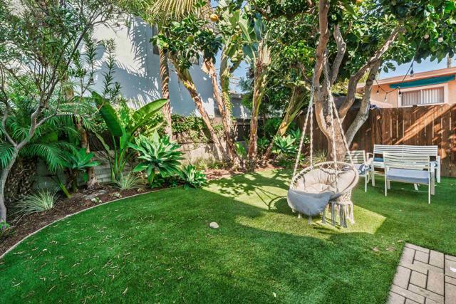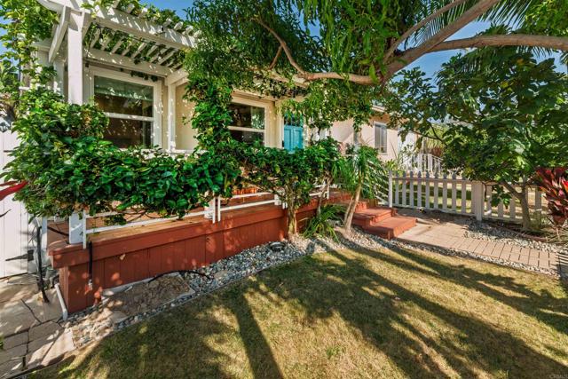 Welcome to this irresistibly charming and joyfully bright beach bungalow in one of Pacific Beach’s most lively and walkable neighborhoods. Just steps to the sand, the boardwalk, and an endless lineup of local favorites, this 2-bedroom, 1-bath gem delivers that pure PB lifestyle people dream about. Inside, the home is full of warmth and personality with real hardwood floors throughout and a layout that makes the most of every inch. One bedroom features a motorized ceiling-mounted TV system—a clever space-saving upgrade—while the second bedroom offers direct access to the backyard, creating a smooth indoor–outdoor flow. A brand-new washer and dryer make everyday living a breeze. The front porch is truly something special, wrapped in a lush, mature passionfruit vine that creates a vibrant, tropical entryway. It feels like stepping into your own little hideaway. Out back, the vibe continues with a private oasis complete with leafy landscaping, turf, multiple lounge areas, a fruiting grapefruit tree, and a dreamy swing chair tucked under the trees. Front and back decks offer even more space to relax, entertain, or soak up those PB sunsets. Recent improvements—including a second sprinkler zone—help keep the greenery thriving. And the location? Unbeatable. Wander to PB Shore Club, Kono’s, coffee shops, brunch spots, boutiques, Sail Bay, and of course—the beach—within minutes. This area is packed with energy, charm, and everything that makes Pacific Beach such a beloved and iconic part of San Diego. With its prime location and effortless indoor-outdoor flow, this home also offers fantastic Airbnb/short-term rental potential for those looking to capture the vacation crowd. Fun, inviting, and full of coastal charm—this is the perfect Pacific Beach getaway.