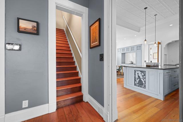 Get ready to fall in love with this Victorian-era historic property with Mills Act in effect! Featuring amazing details throughout, plus modern updates and conveniences, the home offers multiple warm and inviting spaces to enjoy. Oversized kitchen and dining spaces become the centerpiece of entertainment hour, while the library and formal living room invite you to get comfortable. Originally built in 1887, this exemplary and rare Second Empire architectural example was moved from downtown San Diego to its current South Park location in 1911. Take notice of the mansard roof, the rounded fish scale shingles, the historically accurate exterior paint choices, exquisite pocket doors or the beautiful dormers and bay windows. Modern day design touches and luxury updates are evident in the kitchen, bathrooms, and laundry area. On one side of the house a tranquil zen garden welcomes you, while a serene outdoor dining area resides on the other side yard. And don't miss the spacious roof deck off of the primary bedroom that showcases fabulous views of downtown and beyond. Carefully updated and maintained to its present condition, recent upgrades include: exterior restoration and painting, bedroom and bathroom renovation at back of house, downstairs HVAC system, upstairs split system, and foundation retrofit/upgrades. Located near the popular Grape Street dog park, this location offers numerous shopping, dining and entertainment options in a wonderful central neighborhood. This is a unique opportunity to own an impressive piece of San Diego history. Get ready to fall in love with this Victorian-era historic property with Mills Act in effect! Featuring amazing details in almost every room, plus modern updates and conveniences that make for elevated casual living, the home offers multiple warm and inviting spaces to enjoy. Oversized kitchen and dining spaces become the centerpiece of entertainment hour, while the cozy library and formal living room offer intricate details and invite you to get comfortable. Both inside and out, many original and restored features will remind you of the historic nature of this home. Originally built in 1887, this exemplary and rare Second Empire architectural example was moved from downtown San Diego at 1546 A Street to its current South Park location in 1911. Notice the mansard roof (a double pitched hip roof), or get lost in other design elements like rounded fish scale shingles, the historically accurate exterior paint choices, exquisite pocket doors or the beautiful dormers and bay windows. A combination of modern day design touches and thoughtful luxury updates are evident in the kitchen, bathrooms, and laundry area. There's also an EV charger ready in the driveway, and a zen garden on one side of the house, while a tranquil outdoor dining area resides on the other side yard. A former stable now functions as an indoor/outdoor spot for for play, entertaining, or relaxing. And don't miss the spacious roof deck off of the primary bedroom that showcases fabulous views of downtown and beyond. Carefully updated and maintained to its present condition, some of the most recent upgrades include: restoration and painting of the exterior, bedroom 4/office and bathroom renovation at back of house, downstairs HVAC system, upstairs split system, and foundation upgrades and retrofit. Located near the popular Grape Street dog park, this location offers up numerous shopping and entertainment options in a wonderful central neighborhood, plus an amazing selection of unique restaurants including Buona Forchetta, Big Kitchen, and Station Tavern. This is a unique opportunity to own an impressive piece of San Diego history.