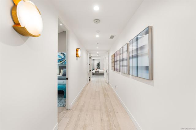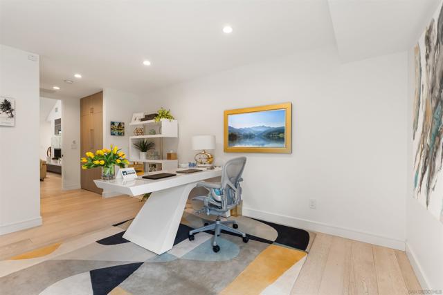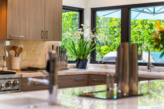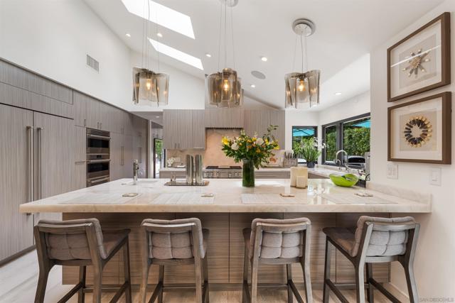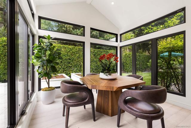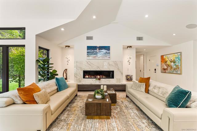 Tucked away at the end of a private cul-de-sac in the coveted Muirlands West neighborhood, this exceptional single-level La Jolla residence blends refined design with modern convenience on nearly half an acre of beautifully landscaped grounds. Every detail has been thoughtfully curated throughout this single level estate, offering a seamless balance of luxury, privacy, and functionality. Step inside to expansive open living spaces bathed in natural light through oversized La Cantina sliding doors, creating a fluid connection between indoors and out. The chef’s kitchen is a true centerpiece, featuring quartzite Cristallo counters, Wolf/Sub-Zero appliances, dual wine fridges, and custom cabinetry. Wide-plank hardwood floors, designer lighting, and sophisticated finishes enhance the home’s contemporary coastal aesthetic. The primary suite provides a serene retreat with an oversized walk-in closet, spa-inspired bathroom with steam shower, soaking tub, and custom stonework. Additional highlights include an executive office, dual laundry, and whole-home smart systems with security and electric shades. Resort-style living continues outdoors with a brand new 42-foot saltwater pool, built-in BBQ island with Neolith counters, fire pit, putting green, and outdoor shower—all framed by lush landscaping, new hardscape, and ambient lighting. Recent enhancements make this home even more remarkable: a custom solar system with a new 400 AMP electrical panel offers energy efficiency and ability to install a EV supercharger, while the garage has been reimagined into a state-of-the-art gym featuring drop-down TVs and built-in cabinetry for sleek storage. Perfectly private yet moments from La Jolla’s beaches, schools, and village amenities, this residence is a rare opportunity to experience modern luxury in one of San Diego’s most desirable enclaves.
