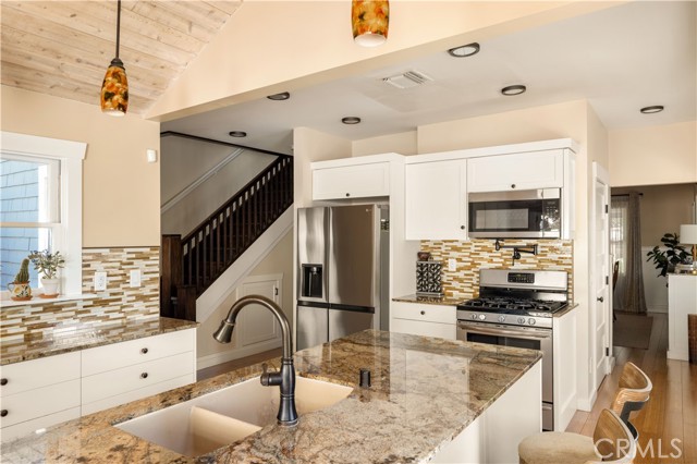 Set on a quiet, tree-lined street, 1065 Locust Street is a beautifully restored 1908 Craftsman that blends original character with a complete modern rebuild. Taken down to the studs in 2015, the home features all new plumbing, electrical, and thoughtfully updated systems throughout. The residence offers four bedrooms and three baths, including a desirable first-floor bedroom suite ideal for guests or multigenerational living. Upstairs, each bedroom showcases its own architectural detail—distinctive ceiling lines, classic windows, and custom built-ins that reflect the home’s heritage. At the center of the home, the redesigned kitchen features a vaulted pine-shiplap ceiling, modern finishes, and an airy, inviting workspace perfect for everyday living and entertaining. The property also enjoys access to a lush private garden shared with just one neighboring residence, creating a peaceful outdoor retreat rarely found in this setting. Close to Metro access, local cafés, restaurants, and Pasadena’s cultural amenities, this home offers the perfect blend of charm, character, and modern comfort—a turnkey Craftsman in a highly sought-after Pasadena neighborhood.