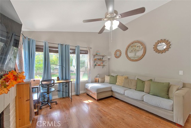 Welcome to this beautifully cared-for 2-bedroom, 2-bathroom home tucked away in a quiet and highly desirable Chino Hills neighborhood. Perfect for anyone hoping to settle into an area known for its top-rated schools and strong sense of community. Inside, you’ll find a bright, welcoming living room with vaulted ceilings. Living space also features a convenient countertop bar that opens to the kitchen—great for entertaining or casual everyday living. Stay cool with the newly installed AC as you relax in the spacious living room and catch your favorite game. The primary bedroom offers generous closet space, its own private bathroom, and plenty of natural light from the sliding doors that lead directly to the large backyard. A perfect spot to enjoy your morning coffee as the sun comes up. Primary bedroom also has vaulted ceilings. Both bathrooms boast natural lighting provided by ceiling skylights, and second bedroom has direct access to guest bathroom. Step outside to your own private retreat. The grassy backyard is ideal for pets, kids play, or a little gardening. Enjoy plentiful harvests of fruit trees such as avocados, lemon, orange, and peach. The covered side patio creates a cozy space for weekend BBQs or unwinding in the evening. The long driveway accommodates up to four cars, and the two-car garage is versatile enough to use as a workshop, hobby space, or even a man cave. Shopping, dining, and even a nearby bowling center are all within walking distance. The community also offers a swimming pool for hot summer days and a tot playground for the little ones. With easy access to the 71, 60, and 91 freeways, freeway commuting is easily accessible. Come take a look, you might just find your next home.