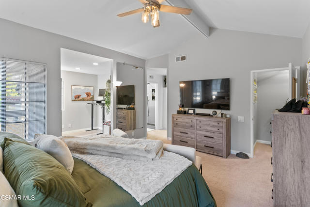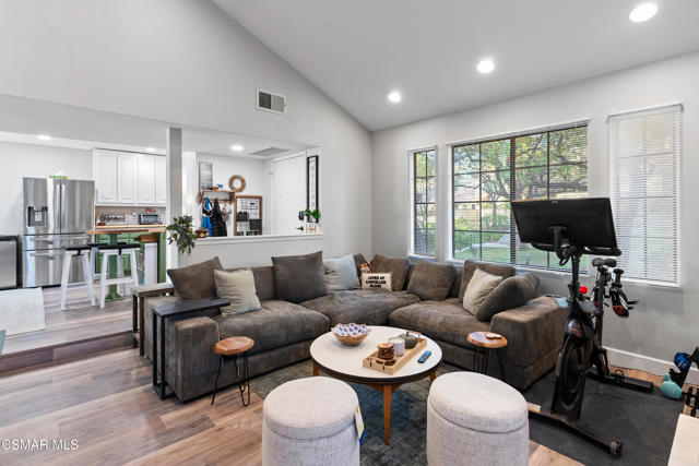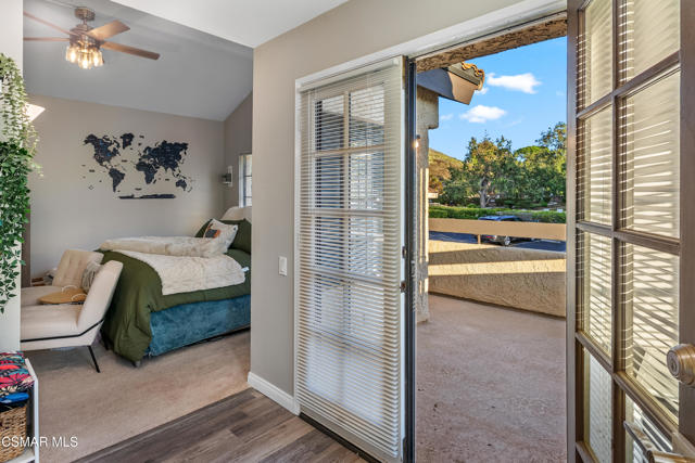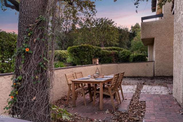 Nestled in the heart of Thousand Oaks, this beautifully remodeled end-unit townhome blends luxury, comfort, and contemporary design. Enjoy breathtaking views of the surrounding hills and a serene, private atmosphere throughout. Situated in one of the quietest locations in the community--furthest from the main road--this home offers exceptional tranquility and privacy.Step inside to an open-concept floor plan with soaring ceilings, abundant natural light, and stunning wood-like flooring throughout. The modern gourmet kitchen has been fully updated with new cabinetry, gorgeous butcher block countertops, all-new appliances, and sleek recessed lighting. Additional upgrades include a keyless entry lock and Ring camera for added convenience and security.The spacious living room features a high ceiling, cozy fireplace, and direct access to a lush private patio--perfect for relaxing or entertaining. A second private patio on the main level can be accessed through the dining room and the attached 2-car garage.Upstairs, you'll find two generously sized bedrooms, each with its own en-suite bathroom. The primary bedroom offers a vaulted ceiling, large walk-in closet, and a versatile sitting area ideal for a home office, reading nook, or craft space. The fully remodeled primary bathroom includes a new vanity, modern lighting, and an elegant walk-in shower. Step out to the private balcony and take in peaceful views of the surrounding greenery and distant Santa Monica Mountains.Outside, the newly landscaped patio with fresh turf is perfect for al-fresco dining and year-round California living. The community offers fantastic amenities including a private pool/spa, dog run, tennis courts, and pickleball courts. Ample guest parking is conveniently located throughout the community, making hosting friends and family a breeze.Located near top-rated schools, fine dining, The Oaks Mall, and countless outdoor activities, this home offers an unbeatable combination of style, comfort, and convenience--ideal for any stage of life.