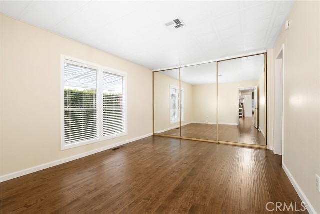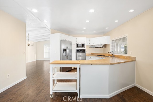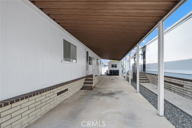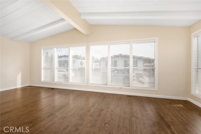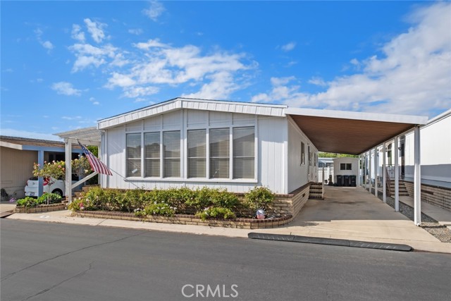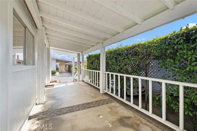 Discover exceptional active-senior living at The Groves—Irvine's most sought-after resident-owned 55+ community. This secure, 74-acre guard-gated enclave with 24/7 staffed entry delivers exceptional active-senior living with complete peace of mind and no space rent. The purchase includes both the home and your proportional share of the land through the community's cooperative structure. Situated on a quiet cul-de-sac street, this beautifully maintained home features a bright, open floor plan with a fresh, light interior color palette, high ceilings, and abundant windows, complemented by hardwood flooring throughout. The spacious living and dining area is enhanced by a custom built-in buffet display cabinet with dimmable accent lighting and generous storage. The updated, open-concept kitchen overlooks the family room, which opens to a large enclosed, covered porch framed by lush greenery,that provides privacy and seamless indoor/outdoor living. The kitchen features recessed lighting, butcher-block–style countertops, white cabinetry with pull-out shelves, and stainless steel appliances, including a side-by-side refrigerator and Bosch 5-burner gas range. The primary bedroom includes expansive triple-door, floor-to-ceiling mirrored wardrobe closets. The en-suite bath offers a separate shower and tub, additional linen storage, and a granite-topped vanity. The second bedroom provides direct access to the guest bathroom, which flows into the spacious laundry room with built-in storage cabinets and a convenient office/workstation area. Washer and dryer are included. Additional features include a newer roof (2021), adjacent tandem covered carport with an oversized locking storage unit, and central air conditioning and heating. The Groves offers a wealth of amenities, including a heated pool, spa, fitness center, sauna, tennis, pickleball, basketball courts, a putting green, lawn bowling, and community BBQ areas. The clubhouse features banquet facilities, card and game rooms, and an on-site hair salon. Creative residents enjoy the ceramic studio, woodshop, and garden area. Additional conveniences include RV parking and a camping club. With on-site management and a dedicated activities coordinator, the community is always active with events and clubs. Low monthly maintenance fees and discounted Cox TV/Internet enhance the value and convenience of living here.