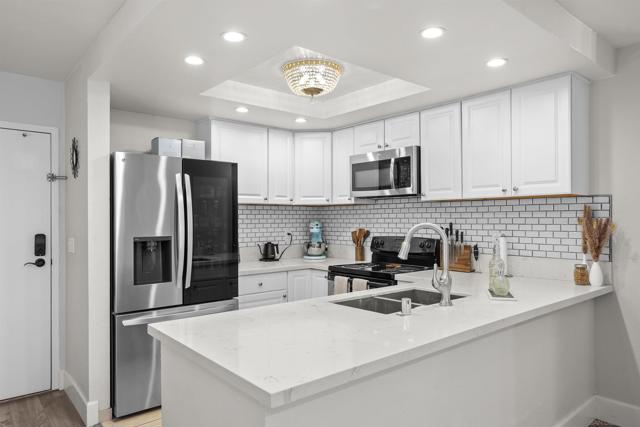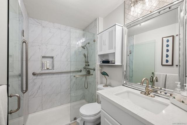 Enjoy this wonderfully updated, 1 bedroom, 1 bathroom condo in Mission Valley. This quiet community offers this ground floor, recently updated unit with an open floor plan and modern day upgrades. The kitchen comes with stainless appliances and plenty of counter space. A walk in shower highlights the homes bathroom, including other modern perks. The generously sized bedroom has plenty of space to live and move. Morning sun shines into the living area with views facing inward the complex and updated air conditioning makes climate control easy. This unit is located near its designated parking spot. Come have a look!