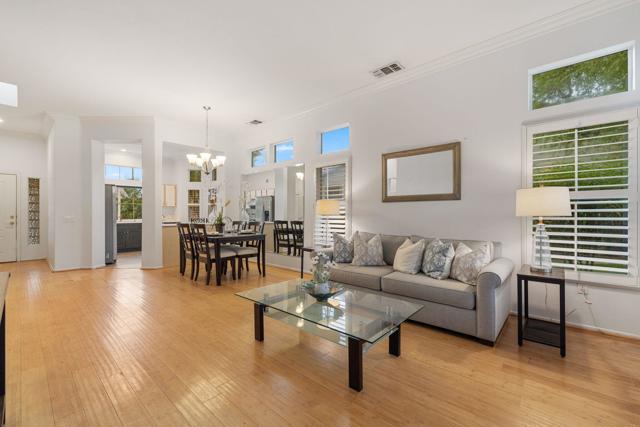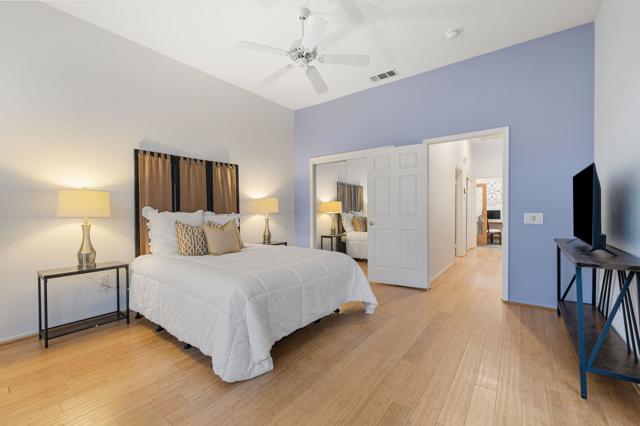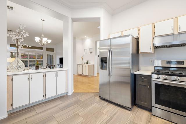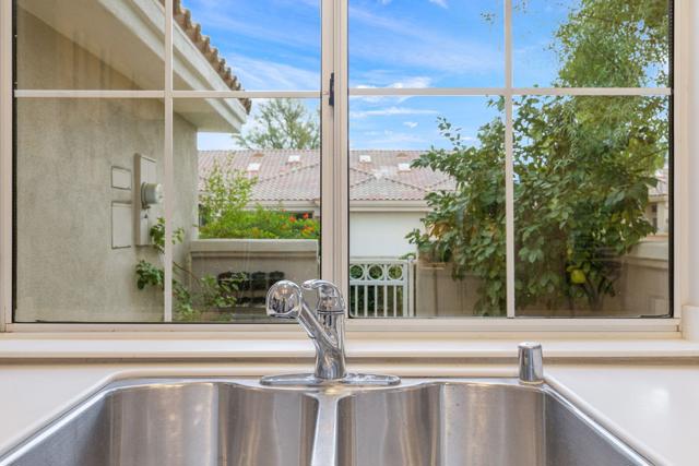 Located in the best 55+ community in the valley, this rare Villa model is super desirable. It has high ceilings, transom windows, and Plantation shutters, which allow lots of light in. It has 1 bedroom with a bay window viewing the greenspace, and a slider out to the patio. The bathroom has been modified to be a fabulous upgraded full bathroom with quartz counters, a new sink and faucet, a nice soaking tub, 2 skylights, and recessed can lights. It has plenty of counter space and a great shower. The roomy kitchen is remodeled with stainless steel appliances, recessed lights, and new lower cabinets, and it's open to the dining and living rooms. All rooms have a nice view of the patio and green space. The front gated courtyard faces north for cool BBQs and outdoor enjoyment, while the back patio faces south for warmth and sunshine. This home provides the best of all seasons. The 1-car garage has been enclosed for security and cleanliness. 2 cars may be parked in the driveway 24/7, if necessary. There is a dry sauna that is currently not operable, and is sold as-is. It can be reconnected (buyer to investigate) or used for something else creative. It allows a small room for a cute little office space. This home is a duplex with an extra HOA fee of 189.00/mo. so you don't have to worry about doing yard work. It's perfect for a carefree, lock-and-go home, or a full-time residence. SUN CITY PALM DESERT IS ALL ABOUT LIFESTYLE!! It has many clubs, activities, amenities, and low HOA dues. Play at 2 championship 18-hole golf courses and practice facilities, pickle ball, tennis, softball, bocci ball, an 18-hole miniature golf course, an honor library, arts and crafts, a ballroom for special entertainment, and 4 saltwater pools kept at 87 degrees with hot tubs. Enjoy 2 great restaurants, a martini/coffee bar, and even a post office. There is a newly renovated classy indoor/outdoor bar with fire tables to enjoy the awesome views and our beautiful desert weather.