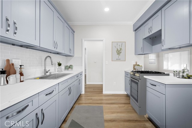Welcome to this beautifully remodeled Long Beach bungalow a move-in-ready gem offering modern upgrades, bright open spaces, and exceptional attention to detail. This charming 2 bedroom, 1bath home has been thoughtfully updated from top to bottom, blending contemporary finishes with comfortable everyday living. Step inside to an inviting layout featuring fresh paint, recessed lighting, and brand-new flooring throughout. The stunning new kitchen showcases sleek shaker cabinets, quartz countertops, subway tile backsplash, and ample storage perfect for cooking, entertaining, and everyday convenience. The open-flow dining area and breakfast bar create the ideal space for hosting family and friends. The fully remodeled bathroom features stylish designer tile, modern fixtures, and a clean, timeless aesthetic. Both bedrooms offer great natural light and comfortable proportions. Additional 3rd room great for an office area off the kitchen. Outside, the home offers a spacious yard ready for your landscaping vision to come to life. Conveniently located near shopping, restaurants, parks, and freeway access, this home delivers both comfort and convenience in one of Long Beach’s vibrant neighborhoods. Fully updated and turnkey, this is the one you’ve been waiting for!