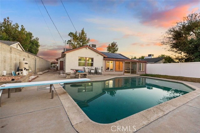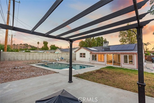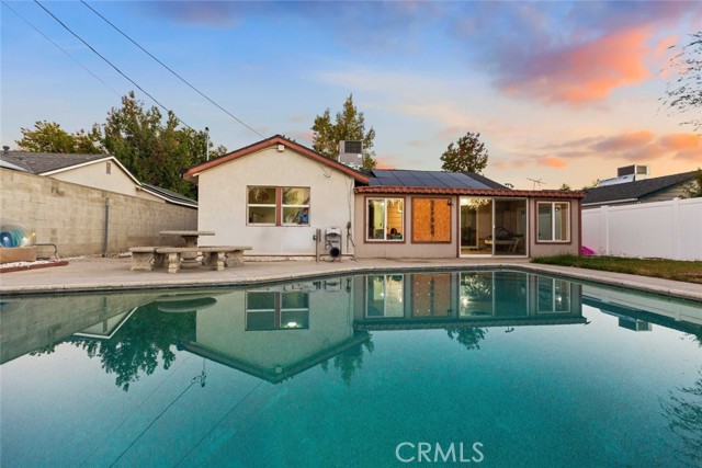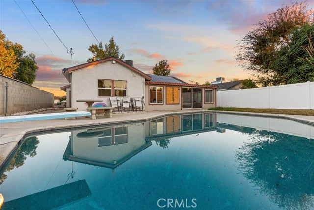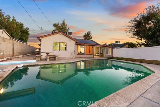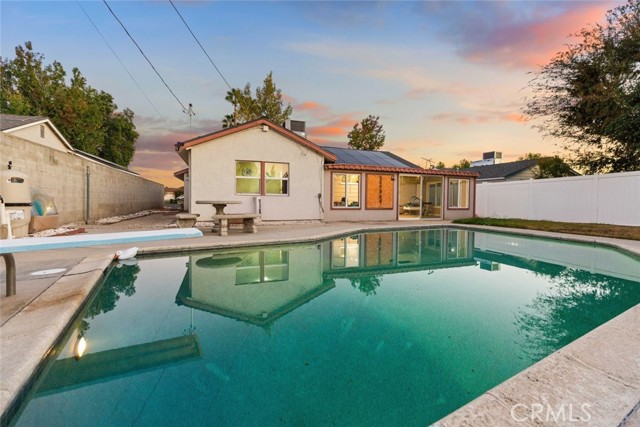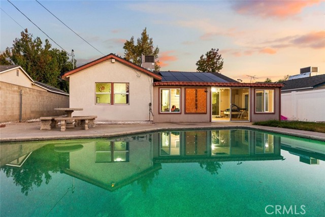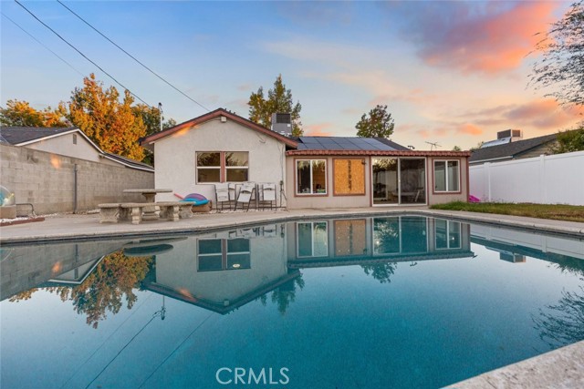 This beautifully remodeled Granada Hills home blends comfort, style, and functionality with thoughtful upgrades throughout. Featuring a new roof, solar panels, and a new HVAC system, it offers modern efficiency and lasting value. The updated kitchen showcases stainless steel appliances, sleek finishes, and an open layout that connects seamlessly to the dining and living areas. Once outside a private backyard retreat with a Pebble-Tec pool and enclosed patio, perfect for entertaining or relaxing. Both bathrooms have been tastefully updated, including one with direct outdoor access, ideal for poolside convenience. Additional highlights include a two-car attached garage, spacious driveway, and beautifully updated flooring throughout. Conveniently located near top-rated schools, shopping, and major freeways, this home offers the perfect balance of modern upgrades and prime location. Experience the best of Granada Hills living, move-in ready and designed to impress.