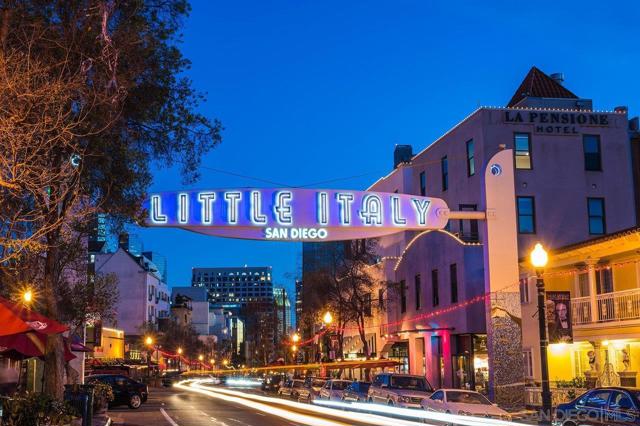 Move-in ready Little Italy loft with dual terraces & skyline views! Step into urban sophistication in this immaculate, top-floor, loft-style one-bedroom home in the coveted Village Walk community at the heart of Little Italy. This beautifully enriched residence boasts 20-foot soaring ceilings, abundant natural light, and hardwood and tile flooring throughout the main level. The open-concept layout features a chef’s kitchen with pantry, spacious dining and living areas, and two private terraces showcasing stunning easterly city and skyline views. Upstairs, the loft bedroom offers a dual-sink full bath, a large custom closet, and elevated views. A fabulous flex space with its own bath on the main level is ideal for a home office, studio, or guest area! Move in and immerse yourself in one of San Diego’s most vibrant neighborhoods, surrounded by acclaimed restaurants, cafés, the San Diego Harborfront, Downtown, Balboa Park, and the world-famous Zoo—all just minutes from your doorstep. Discover effortless living with the perfect blend of style, comfort, and location in this rare Little Italy residence!