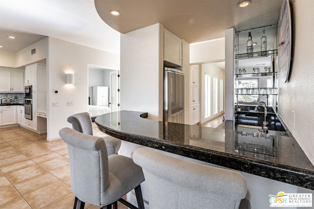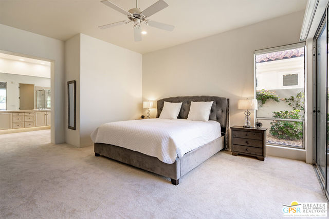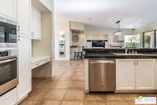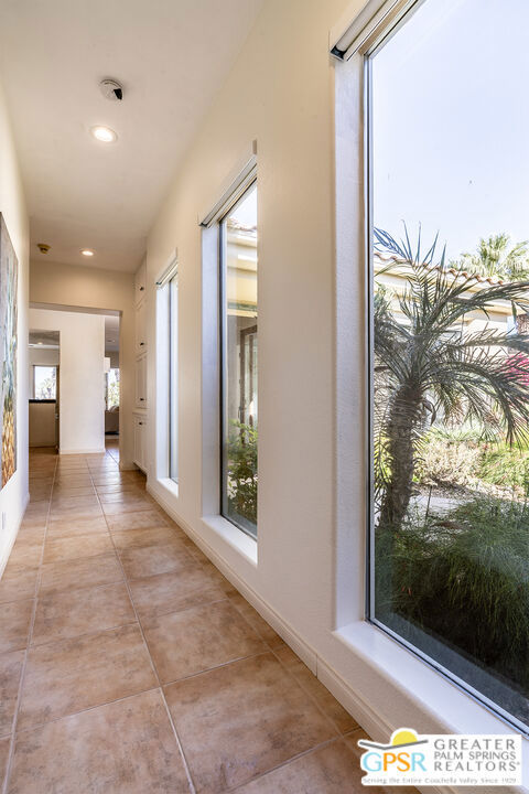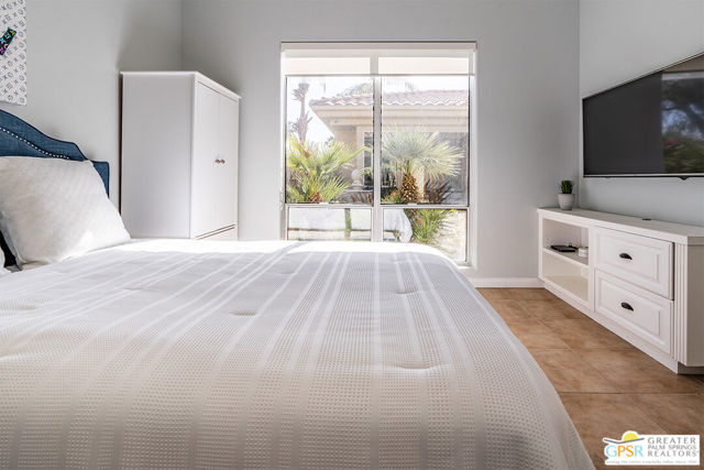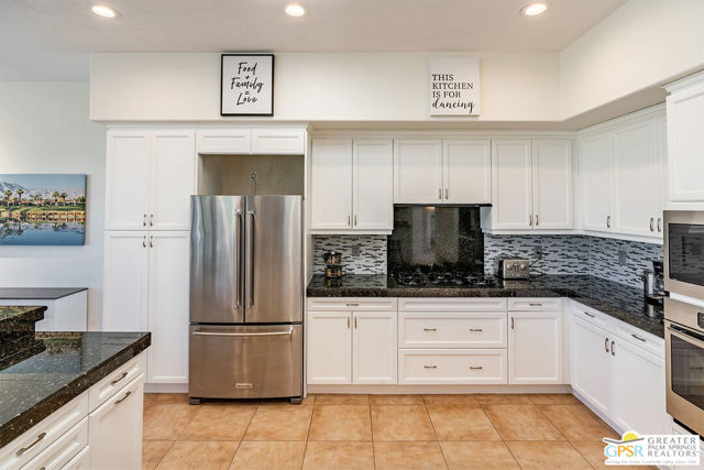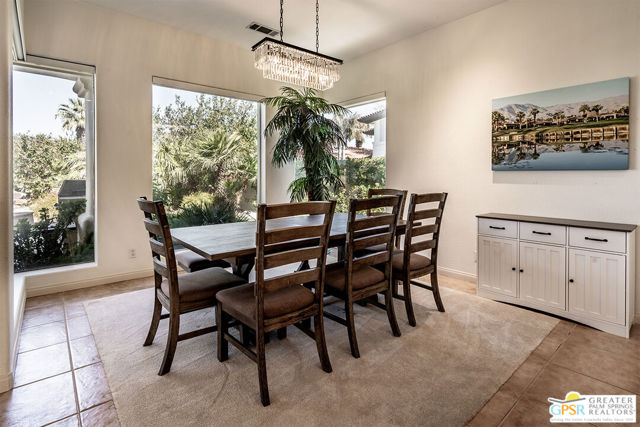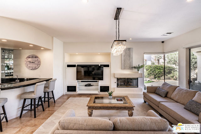 Located in La Quinta's PGA West community on the 8th green of the Jack Nicklaus Tournament Course, home of the American Express PGA TOUR event, this furnished 3-bedroom, 3-bath home with private casita captures golf course living with sweeping lake, fairway, and mountain views. Recent updates include new blinds, new carpet, and fresh interior and exterior paint, creating a bright, move-in-ready setting. Inside, an open-concept great room features a fireplace, wet bar, and expansive windows that frame the views and connect to the patio. The kitchen offers granite counters, gas cooktop, stainless appliances, and a reverse osmosis water system. The spacious main suite includes patio access and a bath with dual vanities, soaking tub, and walk-in shower. The separate casita with ensuite bath provides privacy for guests, while an additional room works well as an office or den. Outdoors, enjoy a private saltwater Pebble Tec pool and spa, built-in BBQ, and a gated courtyard with mature fruit trees. Located in a guard-gated golf course community, residents have access to multiple pools and spas, landscaped grounds, and nearby championship golf options.