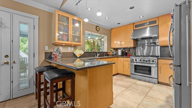 Absolutely Gorgeous, One-of-a-Kind Home in Tranquil North San Bernardino. Welcome to this Spectacular & Beautifully maintained 3-bedroom, 2-bath residence, with also a convenient & nicely placed office, offering 1,458 sq.ft. of refined living space on a generous, luscious 9,222 sq.ft. near corner lot. Built in 1991 & enhanced with top-of -the-line upgrades throughout, this home is truly perfect for those who love to entertain & or relax & enjoy luxurious indoor & outdoor living. Step inside to discover a gourmet kitchen featuring stainless steel appliances, a beautiful garden window, modern & recessed lighting, granite counter tops, & elegant finishes. The open layout flows seamlessly into the inviting living area, complete with a lovely built-in entertainment center & charming potbelly stove. Custom lighting & thoughtful design elements add warmth & sophistication to every room. The out door spaces are their own Oasis & nothing short of extraordinary. The expansive, park-like yard boasts a custom pool & spa with a lovely built in waterfall to accent. It has a serene koi pond, a spacious covered patio & a gorgeous wooden deck, ideal for gatherings or quiet evenings under the stars. With RV parking & a 2 car garage, this property offers exceptional convenience & versatility. This stunning home is located in a peaceful, established neighborhood of San Bernardino, offering privacy, comfort & pride of ownership. Don't miss this rare opportunity to own a truly exceptional property, a fabulous retreat that feels like your own private oasis.