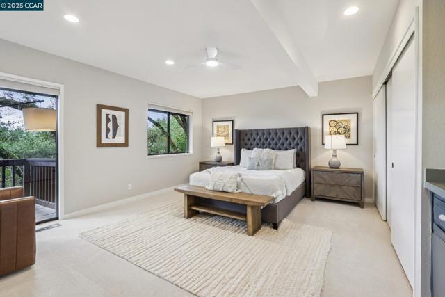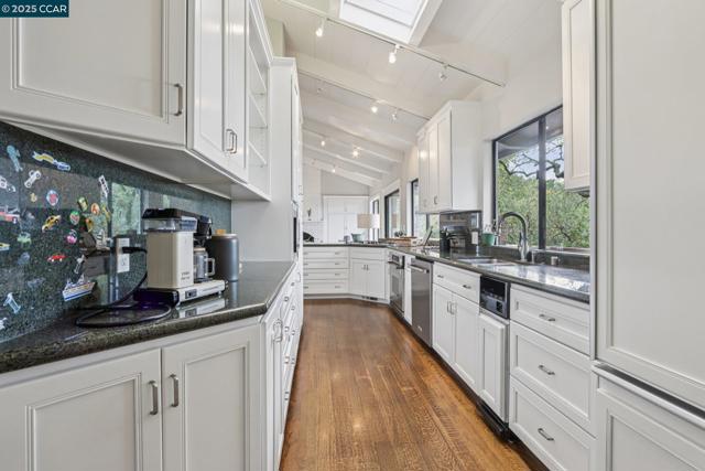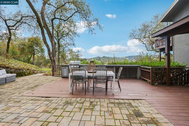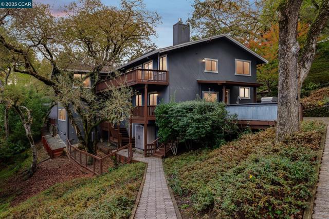 Gorgeous hillside home with flexible floorplan for the whole family! Enjoy sweeping views of downtown Lafayette and the surrounding hills from this private, beautifully appointed home. The flexible layout connects the living, dining, and kitchen areas, creating an easy flow for both entertaining and everyday living. The kitchen offers premium appliances, custom cabinetry, and a casual breakfast bar. The main level features a serene primary suite, an office, three additional bedrooms, and two-and-a-half baths. Downstairs includes a spacious fifth bedroom, full bath, laundry room, and a large bonus room with separate exterior access—ideal for guests, an au pair, or a home office. Two driveways and an oversized three-car garage offer abundant parking. Set on two acres dotted with heritage oaks, the outdoor spaces shine with a generous patio, firepit, and outdoor kitchen. Perfect for quiet evenings or lively gatherings under the stars. All just minutes from BART, Hwy 24, Lafayette Reservoir, downtown shopping and dining, and top-rated Lafayette/Acalanes schools. You will not find anything like this very special home, visit today!