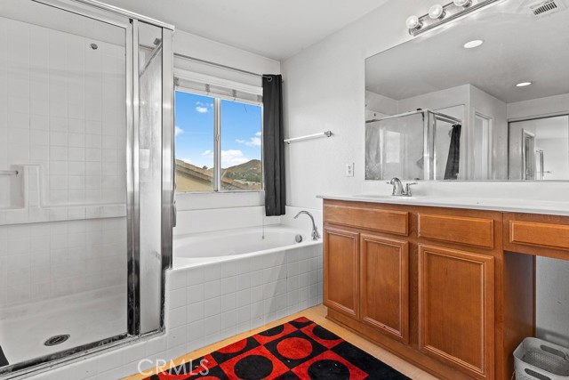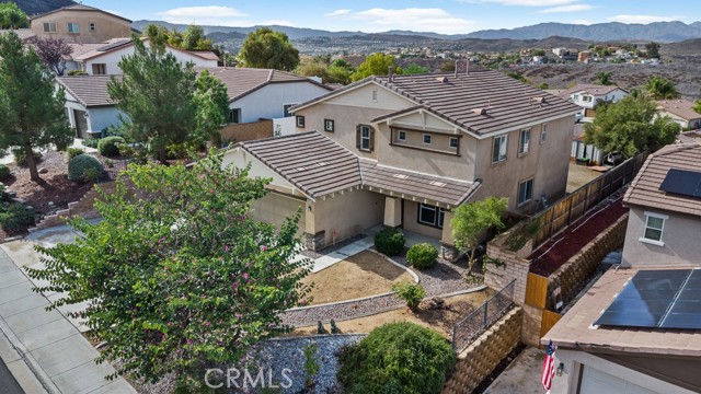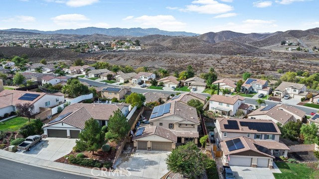 Beautiful 4-Bedroom Home with 33 Fully PAID-OFF Solar Panels in Desirable Canyon Heights. Welcome to this stunning two-story home, ideally located on a quiet cul-de-sac in the highly sought-after Canyon Heights community of Menifee. Offering 4 bedrooms, an additional main-floor bonus room that can easily serve as a 5th bedroom, 3 full bathrooms, and an upstairs loft, this spacious residence features 2,883 sq ft of well-designed living space on a generous 8,276 sq ft lot—perfect for both everyday comfort and entertaining. The heart of the home is the open-concept kitchen, complete with a large granite island, custom backsplash, abundant cabinetry, and ample prep space for the home chef. The inviting layout flows seamlessly into the adjacent living areas, creating an ideal environment for gatherings. The beautifully landscaped front yard enhances curb appeal, while the 3-car garage offers plenty of storage and parking options. One single-car bay has been thoughtfully enclosed for additional utility and includes a 240-volt EV charger—a valuable upgrade for electric vehicle owners. The backyard is spacious, flat, and private, featuring no rear neighbors and offering peaceful neighborhood views—an ideal outdoor setting for relaxation or future customization. Located within walking distance to Quail Valley Elementary School, this move-in ready home is ideal for families. Canyon Heights is a well-established community of just 394 homes, known for its low property taxes, quiet atmosphere, and strong sense of neighborhood pride. Don’t miss this rare opportunity to own an exceptional home with paid-off solar in one of Menifee’s most desirable communities!