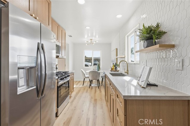 Step inside this beautifully remodeled Oceanside home and you’ll immediately feel it, that calm, coastal “I could really live here” feeling. Every inch of this 2-bedroom retreat has been thoughtfully redesigned with warmth, style, and comfort in mind. This isn’t just a remodel… it’s a reset. A Kitchen That Makes You Slow Down. The heart of the home is the stunning, light-filled kitchen. You’ll notice the custom hex-tile backsplash, warm wood cabinetry, quartz countertops with elegant veining, and modern open shelving that gives the whole space a designer feel. The kitchen flows effortlessly into the living room, so whether you’re cooking dinner or hosting friends, everything feels connected. A Living Room That Feels Like a Breath of Fresh Air. Soft natural light pours through the windows, highlighting the clean, modern lines and inviting color palette. The bathroom is a showstopper. Hand-patterned cement-style floor tile, brass fixtures, a walk-in shower with custom niche shelving, and a warm wood vanity give it a boutique-hotel vibe. It’s the perfect blend of modern, stylish, and practical. Both bedrooms offer plenty of natural light and a peaceful feel — perfect for sleeping, working from home, or creating a relaxing sanctuary. This home wasn’t just updated, it was thoughtfully reimagined for someone who values quality, comfort, and style. Every finish was selected to feel warm and welcoming, creating a home that’s as beautiful as it is livable. Nestled in a quiet 55+ Oceanside community just minutes from shopping, dining, parks, and a quick drive to the beach, this home offers the perfect mix of convenience and coastal lifestyle and ocean view from the front yard. If you’re looking for a turn-key home with soulful design, modern upgrades, and an inviting atmosphere that feels “just right” the moment you step in… 3648 Mira Pacific Drive is the one you don’t want to miss.