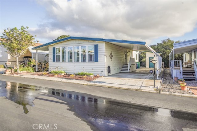 Roomy 2 bedroom, 2 bath home with a living room, dining area, family room, enclosed sunroom and a lovely setting with a forest view in the back yard. There is a spacious primary bedroom and ensuite bath and a sizeable guest bedroom with an attached bath. The family room, kitchen and enclosed sunroom are open to each other as a great room concept. There is a sizable deck off the rear of the home that takes full advantage of the beautiful forest views off the back. The carport can accommodate two cars and there is a very cute, clean shed with a concrete floor. This home has so much potential with some updating or remodeling. The exterior has been very well cared for and there is a very nice yard/garden space as well. Sunrise Terrace Mobile Home Park is a senior park and there is not land lease. There is an HOA fee of $290 a month. This park has many amenities that include, a pool, hot tub, spa, tennis and pickle ball courts, BBQ area, fire pit, bocce ball court, billiards, dog park, community room and a small golf course. Information is not verified or guaranteed.