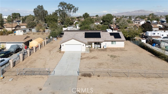 This beautiful single-story home offers 3 bedrooms, 2 bathrooms, and 1,649 sq ft of comfortable living space on an expansive lot of over 20,000 sq ft. Located in a desirable area of Victorville, the property features a spacious layout filled with natural light, a well-designed kitchen, and generously sized bedrooms. The large lot provides ample room for RV parking, outdoor entertaining, future enhancements, or additional storage. The home also includes paid-off solar panels, which enhance energy efficiency and lower utility costs. This is a great opportunity to own a well-maintained property in a prime location with exceptional indoor and outdoor space.