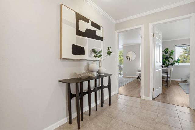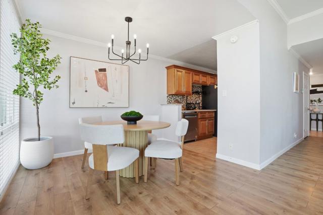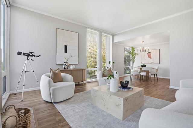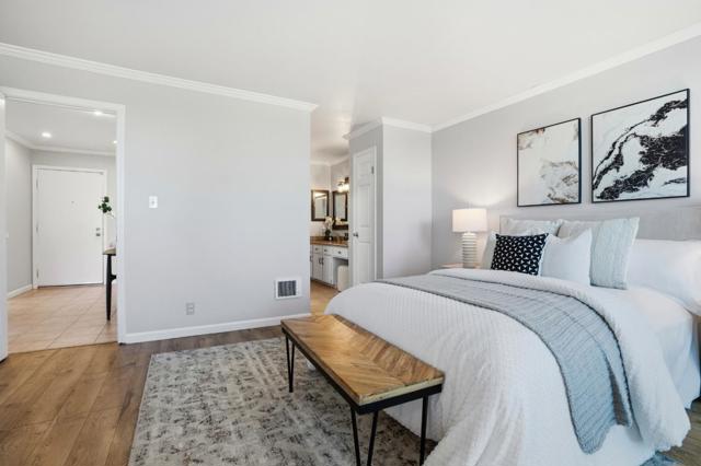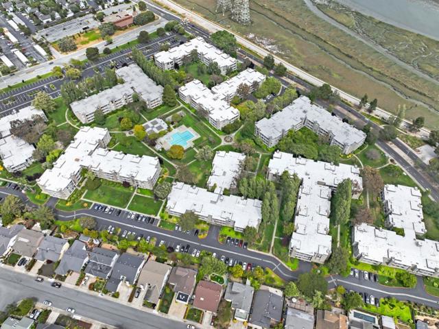 This spacious top-floor corner residence offers 2 bedrooms, 2 baths, soaring ceilings, wood floors, and an open layout that extends to a long balcony with unobstructed views of Foster City and the Bay. Tucked away from the road, it feels private and quiet, creating an ideal retreat. The upgraded kitchen, in-unit laundry, and primary suite with a walk-in closet add everyday convenience, while the corner positioning brings natural light into every room through generous windows. The result is a bright, spacious, and inviting home with a calm, airy feel throughout. The community delivers an impressive array of amenities alongside the Bay Backwater Trail, including a heated pool and spa, BBQ and picnic and event areas, tennis and bocce ball courts, basketball court, kids play area, par course, secure vehicle parking, RV parking, a car wash station, and beautifully maintained landscaping. Additional storage is located on the same floor as the unit, and gated parking provides two designated spaces (34/35). Residents enjoy peaceful walking paths, lush greenery, and a strong sense of privacy, all while being minutes from top schools, parks, recreation trails, local shopping, and easy commute. This home blends comfort, convenience, and a truly enviable Foster City location.