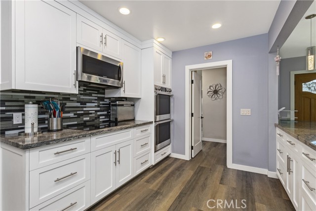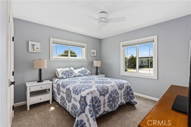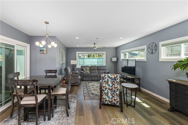 Welcome to this beautifully upgraded 3-bedroom home, ideally located on a corner lot at the entrance of a cul-de-sac street in Lakewood. The open-concept layout seamlessly connects the kitchen, living room, and family room-creating a warm and inviting space perfect for both everyday living and entertaining. The remodeled kitchen is a true centerpiece, featuring elegant Granite countertops, wine fridge, ample cabinetry, and a layout that opens directly to the main living areas. Both bathrooms have been tastefully remodeled with modern finishes, including a walk-in shower and matching Corian counters. Each of the three bedrooms provides generous closet space, with the primary suite boasting a walk-in closet for added convenience. The family room is filled with natural light and includes enclosed cabinetry for stackable laundry, with direct access to a private covered patio and backyard—ideal for relaxing or hosting guests. Recent upgrades include a newer roof and AC system, electrical panel, windows, interior doors, interior and exterior paint, Honeycomb window coverings and 4-year-old solar panels. With its prime location, thoughtful improvements, and welcoming layout, this Lakewood gem is ready to be your next home.