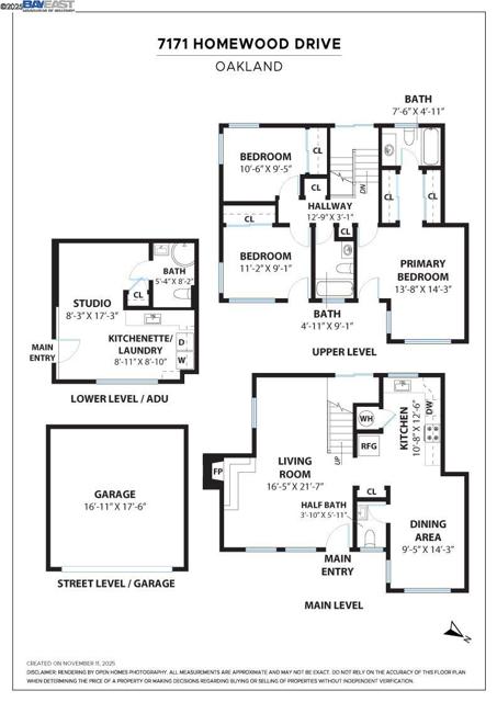 Transparent Price! On a sprawling, hikeable lot surrounded by beautiful forest, this Montclair contemporary 3BD/2.5BA main home and its nearly finished lower studio/1BA apartment (with its own laundry) is ready for your imagination and TLC. The 2095 SQFT home welcomes you into an open floorplan with picture windows to treetop views. The sunny living and dining areas feature a flagstone fireplace, deck for indoor/outdoor living, and hardwood floors. Great flow leads to the adjacent kitchen with modern cabinets and a backyard view. Additional flexible space on this floor is ideal as an office, playroom, or possible kitchen expansion. A convenient powder room is nearby. Upstairs, a glass door opens to the expansive backyard with decks where you can entertain, relax, or play. The primary suite offers high ceilings, large closets, a full bath, and a glass door onto a deck with canyon views. The floor is complete with two more bright bedrooms, a full bath and laundry. The lower level apartment is ready to be completed and used as an in-law unit, office, or flexible bonus space. A 2-car garage makes parking easy. Down the hill, enjoy Montclair Village, and sought-after public schools. Up the road, the beautiful East Bay parks with their trails, pools, golf course, and stables.
