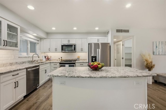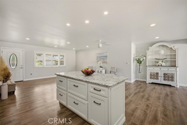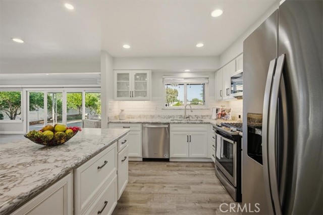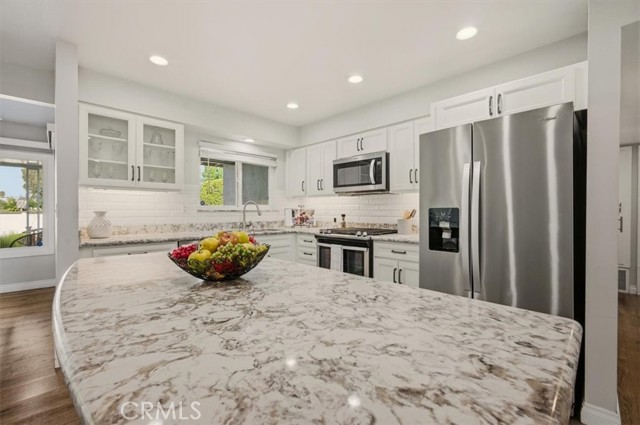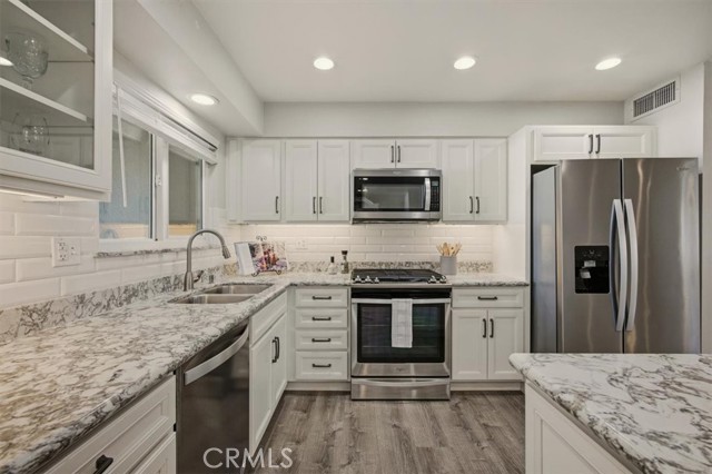 Fully upgraded 55+ home with modern finishes and thoughtful touches throughout! Enjoy a stunning kitchen with custom cabinets, under-cabinet lighting, soft-close features, built-in trash bins, stainless steel appliances, quartz countertops & island, and an incredibly spacious walk-in pantry. Two upgraded walk-in showers, luxury vinyl flooring, new interior doors, updated recessed lighting, and an interior laundry room with a sink. Relax in the large living room, the oversized primary suite with a sitting area, or enjoy the backyard, featuring a riverbed, low-maintenance landscaping in front and backyard, fruit trees, succulents, a backyard patio with newer tile, and three sides of vinyl fencing. Recent updates include a 2021 furnace, a 2025 garage door, and newer windows with updated window covers. No homes behind, low annual taxes, and move-in ready—this home combines privacy, upgrades, and effortless 55+ living!