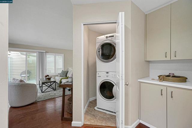 Step into comfort and style with this beautifully updated 1-bedroom, 1-bath home in the sought-after Baypointe community—an inviting space you’ll love coming home to every day. Thoughtfully designed for both convenience and relaxation, this residence features modern upgrades throughout, including sleek recessed lighting, stainless steel appliances, fresh finishes, and high ceilings that create an open, airy feel enhanced by abundant natural light. The well-appointed kitchen flows seamlessly into the living and dining areas, while the private balcony offers a peaceful spot to enjoy hillside views. Additional conveniences include in-unit laundry, an attached 1-car garage with direct interior access, and a monthly HOA of $474 that covers water and trash and provides access to resort-style amenities such as a gated pool, spa, and clubhouse. Ideally located less than 10 minutes from freeway entrances to I-80 and Highway 4, this home offers effortless travel to nearby destinations like Napa, San Francisco, and Walnut Creek. Surrounded by parks, scenic trails, shopping, dining, and nearby schools, this home combines comfort, location, and modern living into a serene and stylish retreat in the beautiful city of Hercules.