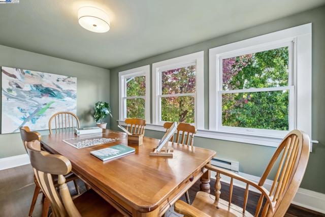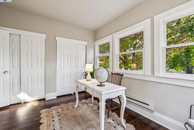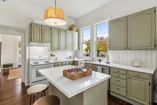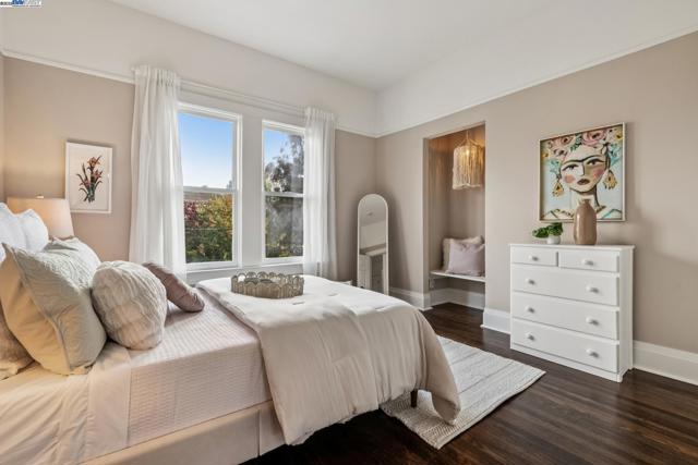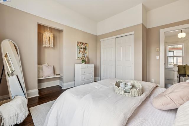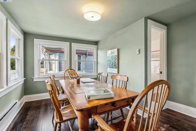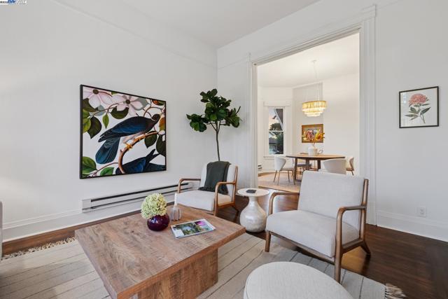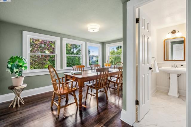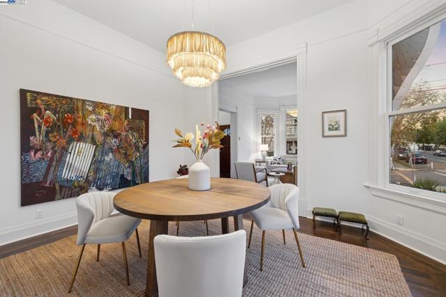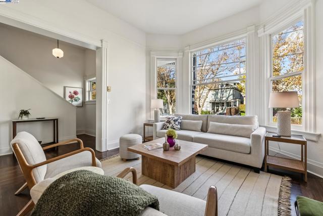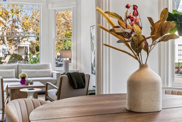 Welcome to 1834 San Antonio Avenue, a timeless Queen Anne built in 1890 by noted architect and builder Joseph Leonard. Located in Leonardville in the heart of Central Alameda’s Bronze Coast, this elegant single-family home offers 2,910 sq. ft. of living space on a 6,600 sq. ft. corner lot filled with light, character, and historic charm. High ceilings, double-hung bay windows, and intricate period moldings highlight the home’s craftsmanship, while refinished hardwood floors, fresh paint, and updated lighting bring warmth and sophistication throughout. The spacious layout includes a parlor, dining room, and an eat-in kitchen with a built-in banquette, quartz countertops, shiplap backsplash, and an island with extra storage. There is backyard access from the kitchen, creating a seamless indoor-outdoor flow perfect for entertaining or relaxing beneath the maple trees. There are four bedrooms, two updated bathrooms, and a large laundry/utility room, plus multiple bonus spaces ideal for a home office, art studio, playroom, or cozy den. Ideally situated near Blue Dot Café, Lilac Dress Boutique, and Franklin Park, this home offers both convenience and community. With its beautiful Queen Anne architecture, versatile floor plan, and prime Alameda location, 1834 San Antonio Avenue capture