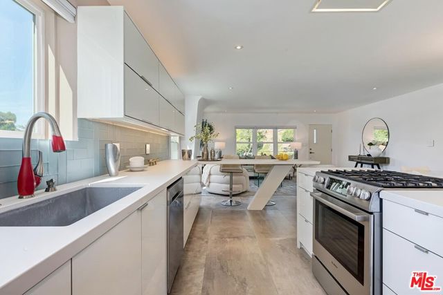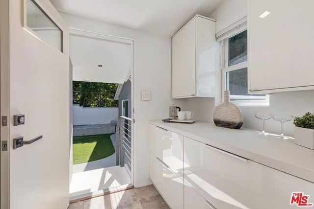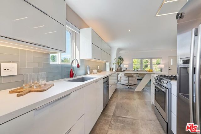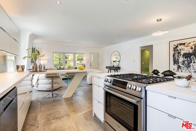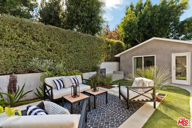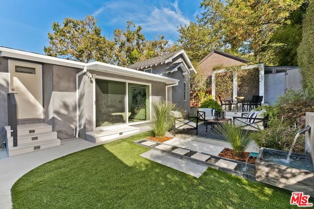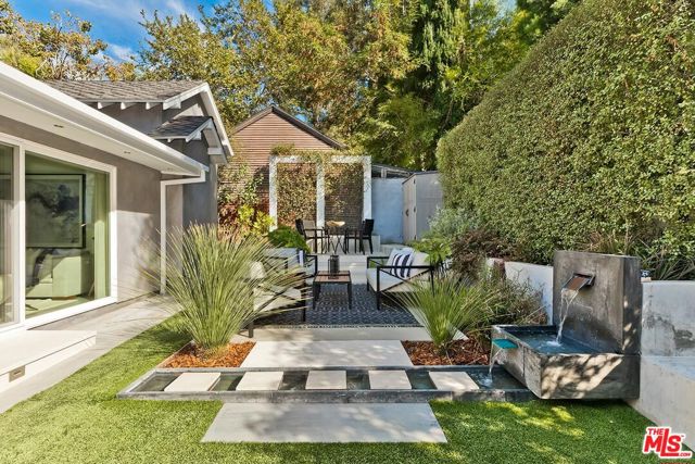Located in the highly desirable Lake Hollywood Knolls neighborhood, this stunning, refined, and sophisticated home has been designed with a marked degree of quality and attention to detail. From the moment you enter the living area, you'll notice that the flooring, lighting, countertops, floor plan, cabinetry, and architectural design are all in harmony with each other, creating a serene atmosphere. The kitchen is gorgeous, featuring European-style cabinetry, quartz counters, Bosch appliances, custom lighting, and a glass tile backsplash. There is also a custom-designed countertop for quick or casual meals. The kitchen opens to the dining area and the step-down family room. No detail was overlooked in the design of this home. The primary bedroom and ensuite bath are elegant, featuring porcelain tiles, designer fixtures, and a quartz counter. There is also a spacious walk-in closet with pullout bins for storage. The guest bathroom is beautifully appointed with designer finishes and fixtures. The backyard has a Zen-like quality that instills a feeling of peace. Landscaped for privacy, sitting areas, and a beautiful water feature complete the tranquil setting. The garage has been built out with finished walls, LED lighting, air conditioning, and high ceilings. It is suitable for office space, a gym, an entertainment room, or it can easily be used as a garage. A newer presidential shingle roof, copper plumbing, sewer line, HVAC system, appliances, and drip irrigation system have all been installed. The location is fantastic! Walking distance to Lake Hollywood, hiking trails to the Hollywood Sign, Wisdom Tree, and more. Minutes to Whole Foods, Trader Joe's, Ralph's, Von's, and restaurants.