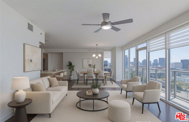 Experience elevated urban living in this southwest-facing 3-bedroom, 3-bathroom corner unit on the 10th floor of Solair, a premier high-rise at Wilshire and Western. Spanning approximately 1,700 square feet, this residence offers floor-to-ceiling double-paned windows that flood the space with natural light and provide sweeping views of the Los Angeles skyline. The open-concept layout seamlessly connects the living, dining, and kitchen areas, ideal for both daily living and entertaining. The kitchen has been recently updated with new quartz countertops, a modern sink, microwave, and gas cooktop, while retaining the original contemporary European-style cabinetry. An individual water shut-off valve has also been installed for added convenience. The primary suite features a walk-in closet and a fully remodeled en-suite bathroom adorned with upscale finishes. The second bedroom also boasts its own remodeled private en-suite, while the third bedroom is conveniently located near a hallway bathroom with a walk-in shower, perfect for guests or as a home office. Additional highlights include two assigned parking spaces in a secure resident garage. Residents enjoy access to a 7th-floor resort-style amenity deck featuring a heated swimming pool, spa, private cabanas, BBQ area, and a dedicated dog park. Indoor amenities include a well-equipped fitness center, elegant residents' lounge, stylish clubroom, business center, conference rooms, and an on-site coffee bar. The building offers 24-hour concierge service, controlled access, and on-site security. Situated above the Purple Line Metro station and close to HMart, CVS, Ralphs, and Koreatown's vibrant dining and shopping scene, this home places you in the heart of it all. Ground-level retail and dining options include Starbucks, Paris Baguette, a beauty salon, and a Korean BBQ restaurant, all just steps from the lobby. Don't miss the opportunity to own this exceptional unit in one of LA's most desirable high-rise communities.