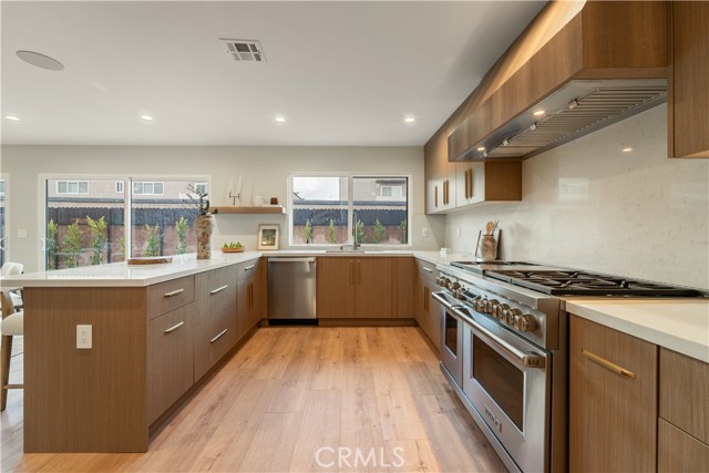 Situated on a quiet cul-de-sac, this beautifully reimagined Del Rey residence seamlessly blends modern design with quintessential California living. Fully renovated inside and out, the spacious living room sets the tone with its chic fireplace and flows effortlessly into the open-concept dining area and designer kitchen. Here, top-of-the-line appliances and sleek custom cabinetry create a culinary centerpiece suited for gourmet cooking. Designed for indoor-outdoor living, sliding glass doors open to an inviting backyard retreat with a generous patio and lush grassy yard, perfect for entertaining in style or relaxing after a long day. The main-floor primary suite offers a serene retreat, complete with custom built-in storage and a spa-inspired bathroom that boasts a rainfall shower and double vanity. Upstairs, three generously sized bedrooms and a full bath provide ample space for family or guests. Additional features include a Nest thermostat, built-in speakers and a two-car garage with laundry. This coveted Westside location is ideally situated nearby the marina, Venice Beach, trendy restaurants, boutique shops and so much more. An amazing home in every way!