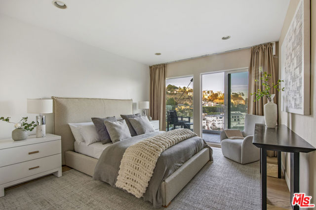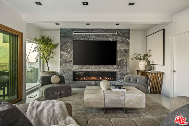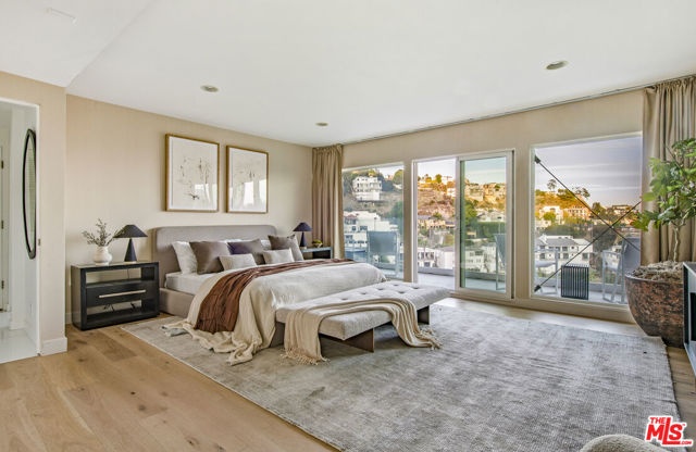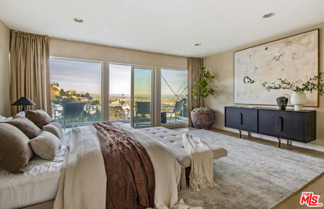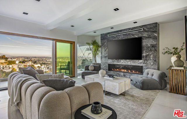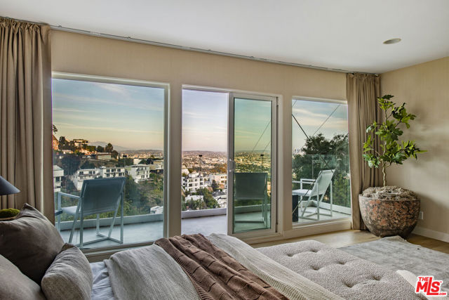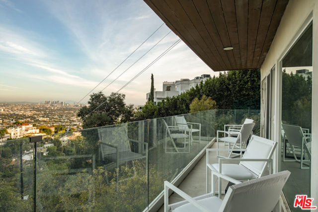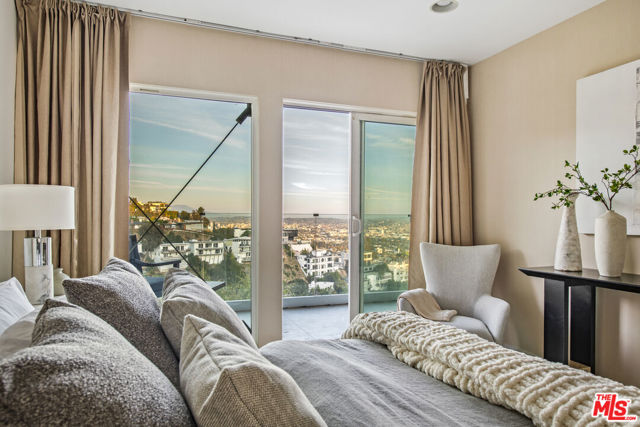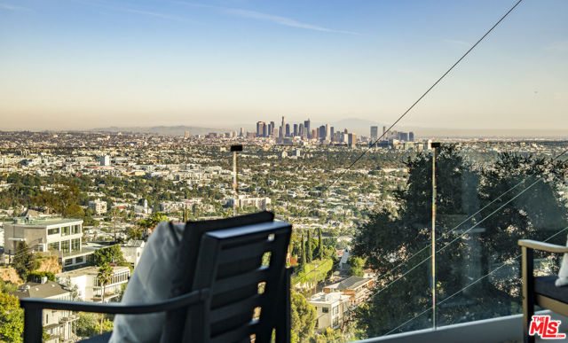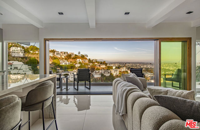 Perched one minute above the Sunset Strip, this contemporary modern retreat offers explosive, panoramic views from every room. The open-concept layout features floor-to-ceiling glass windows and sliding doors, a sleek modern kitchen, and balconies off each bedroom and the main living space. The home blends indoor and outdoor patio space, with terraces on all three levels, immersing you in sweeping 180-degree views straight to downtown Los Angeles, perfect for hosting and entertaining amongst the city lights. A separate guest apartment, with a one-bedroom, one-bathroom suite and a den, offers flexibility for visiting family and friends or serves as an ideal income-producing rental opportunity. Just minutes above the Sunset Strip, near Chteau Marmont, this home captures the essence of Los Angeles living.