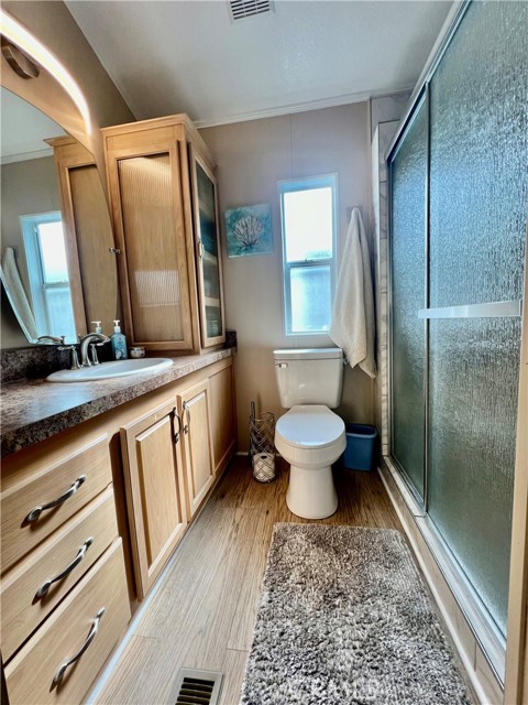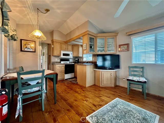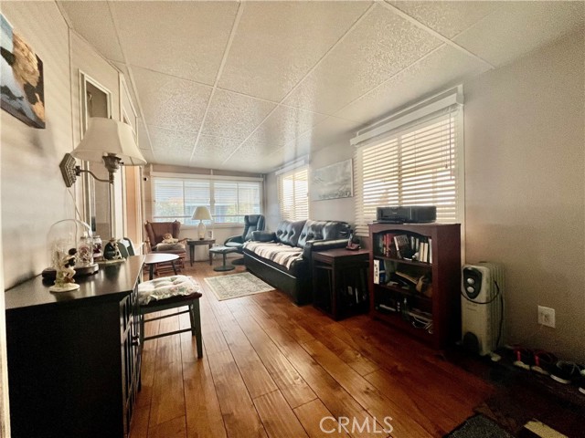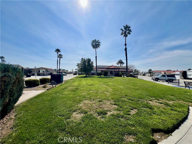 OWN YOUR LAND! DESIRED HERITAGE RANCH 55+ SENIOR GATED COMMUNITY! Beautiful 2003 FLTWD park model with approx 600 sq ft of living area. Kitchen open to the living room with vaulted ceilings and hardwood floors throughout. Bedroom has mirrored wardrobe closet doors and extra built in cabinetry. Bathroom updated with step-in shower stall, vanity sink and extra cabinetry. Bonus multipurpose room with built in wardrobe closet could easily be used as a second bedroom. Exterior includes attached covered carport and storage shed. Covered porch is great for entertaining or enjoying your morning or afternoon beverages with incredible views of the San Jacinto mountains. The Clubhouse includes several amenities gym/fitness room, library, billiard room, card room, banquet room, shuffle board facility, pool & indoor spa, covered patio area with bar & stools great for hosting social events along with many activities throughout the year. LOW TAXES & HOA FEES OF $218.00 X MONTH includes water, sewer, trash basic cable & internet. Retirement at it's finest!