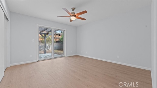 Beautifully remodeled single-story home located in a quiet Cul-de-Sac. This move-in-ready property features an open floor plan with vaulted ceilings, new laminate flooring, fresh interior & exterior paint, and abundant natural light throughout. The spacious living room includes a stunning updated marble-style fireplace. The new kitchen facelift offers, white shaker cabinets, quartz countertops, recessed lighting, matte black fixtures, and new black appliances. It opens to the dining area with sliding glass doors leading to the private backyard, perfect for indoor/outdoor living. This home includes 2 spacious bedrooms, each with new ceiling fans and generous closet space. The primary suite features backyard access and a fully upgraded bathroom with a walk-in shower and modern finishes. The hallway bath has also been updated with a beautiful wood-tone vanity and contemporary fixtures. Additional Highlights: Indoor Laundry Closet with Storage Cabinets, New HVAC, Hot Water Heater, Mature Trees, Covered Patio Pergola, and Attached 2-Car Garage. Conveniently located near parks, schools, shopping, and major commuter routes. A fully updated, Move-in-Ready Gem!! ~ Must See!!! ~